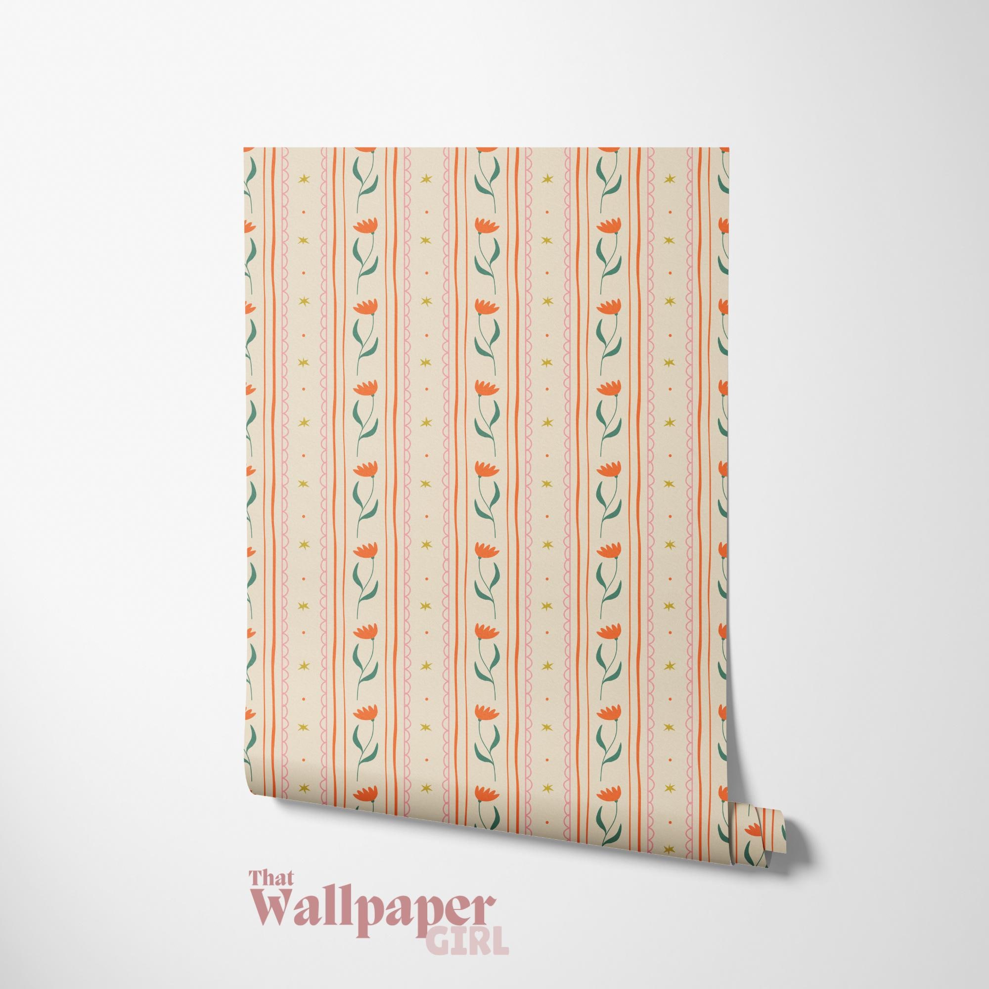 Tulip Thread - Cheerful Floral Stripe Wallpaper for Cozy & Vintage Spaces Brighten up your walls...