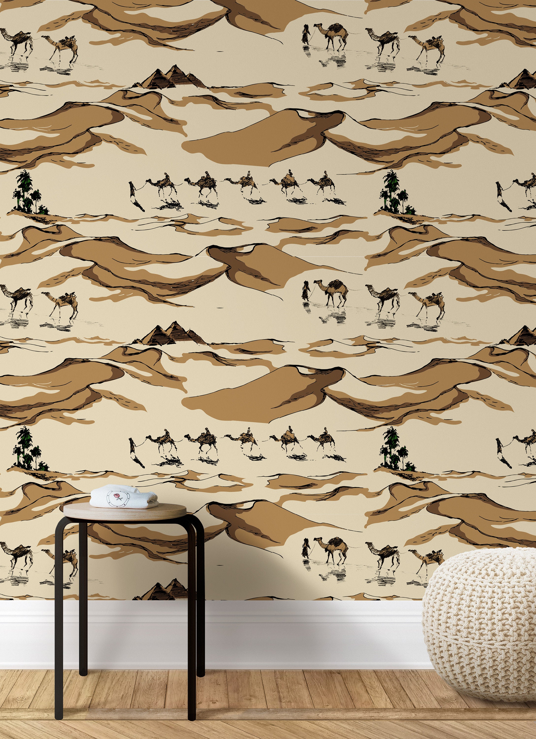Camel Train in Sand Dune Desert Wallpaper, Sahara Wall Art, Desert Landscape Wall Decor ECO-FRIENDLY...