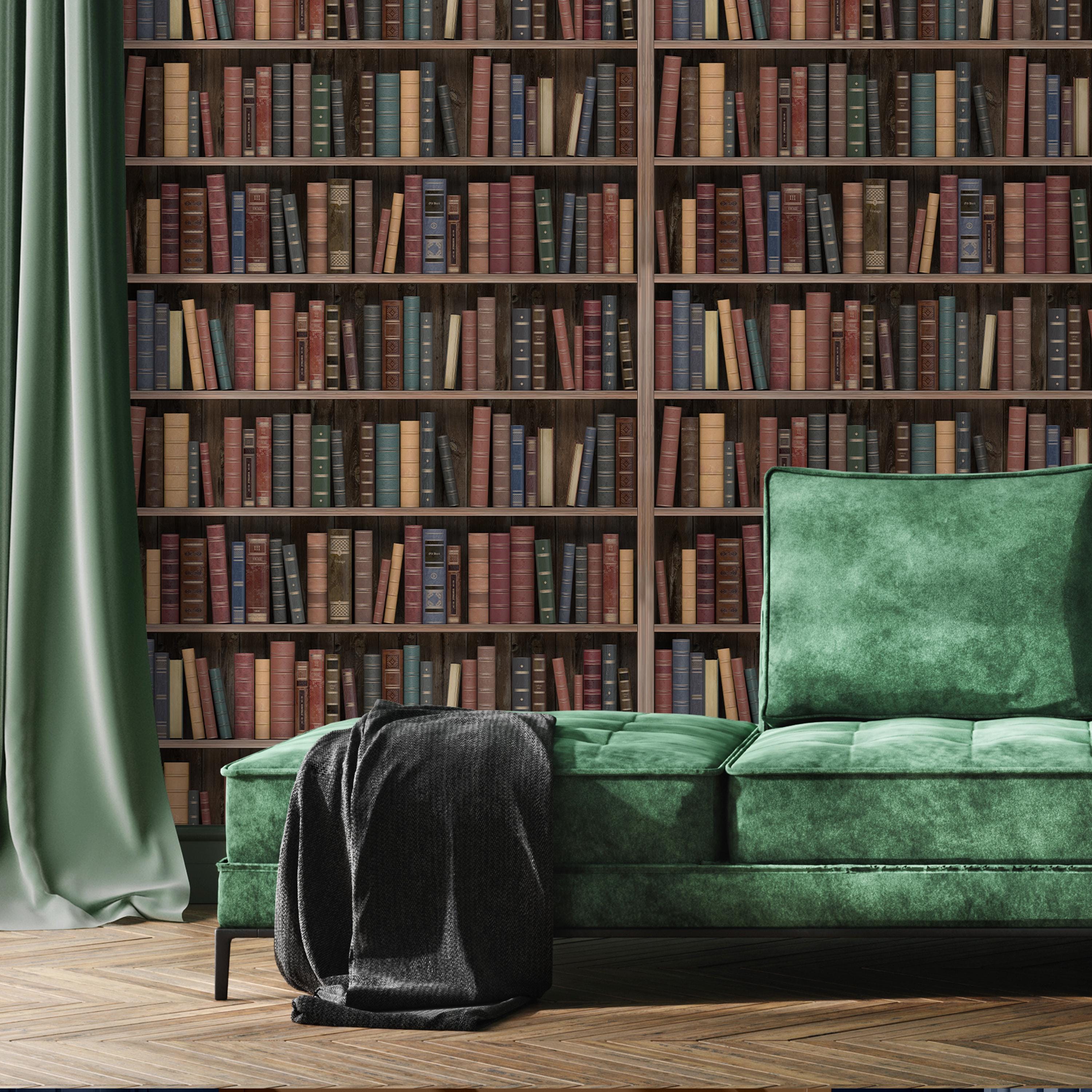 Bookshelf Wall Mural | Dark Academia Library Wallpaper | Faux Book ...