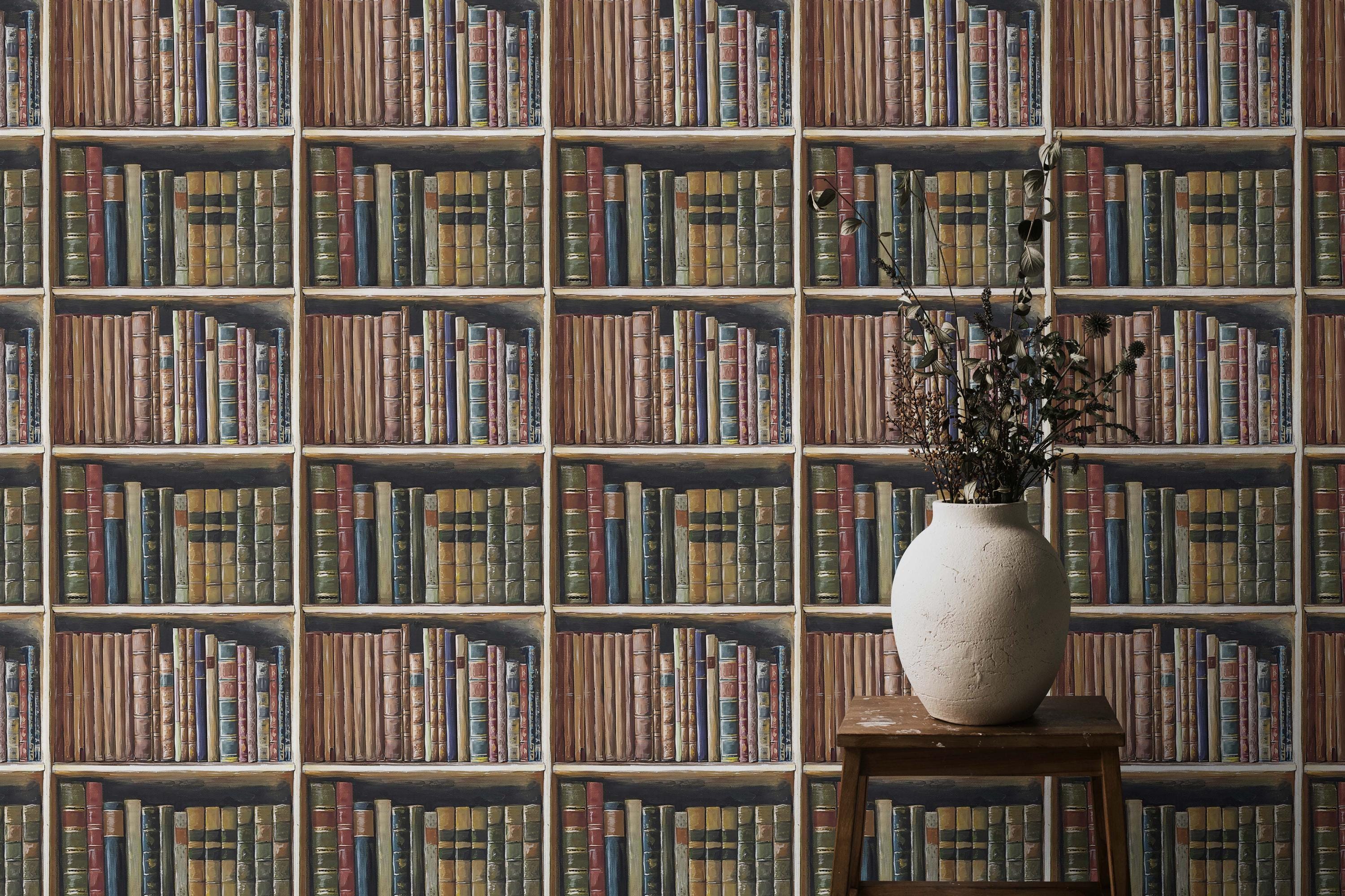 Book Shelves Wallpaper by MindtheGap - Vintage Library Bookshelf De...
