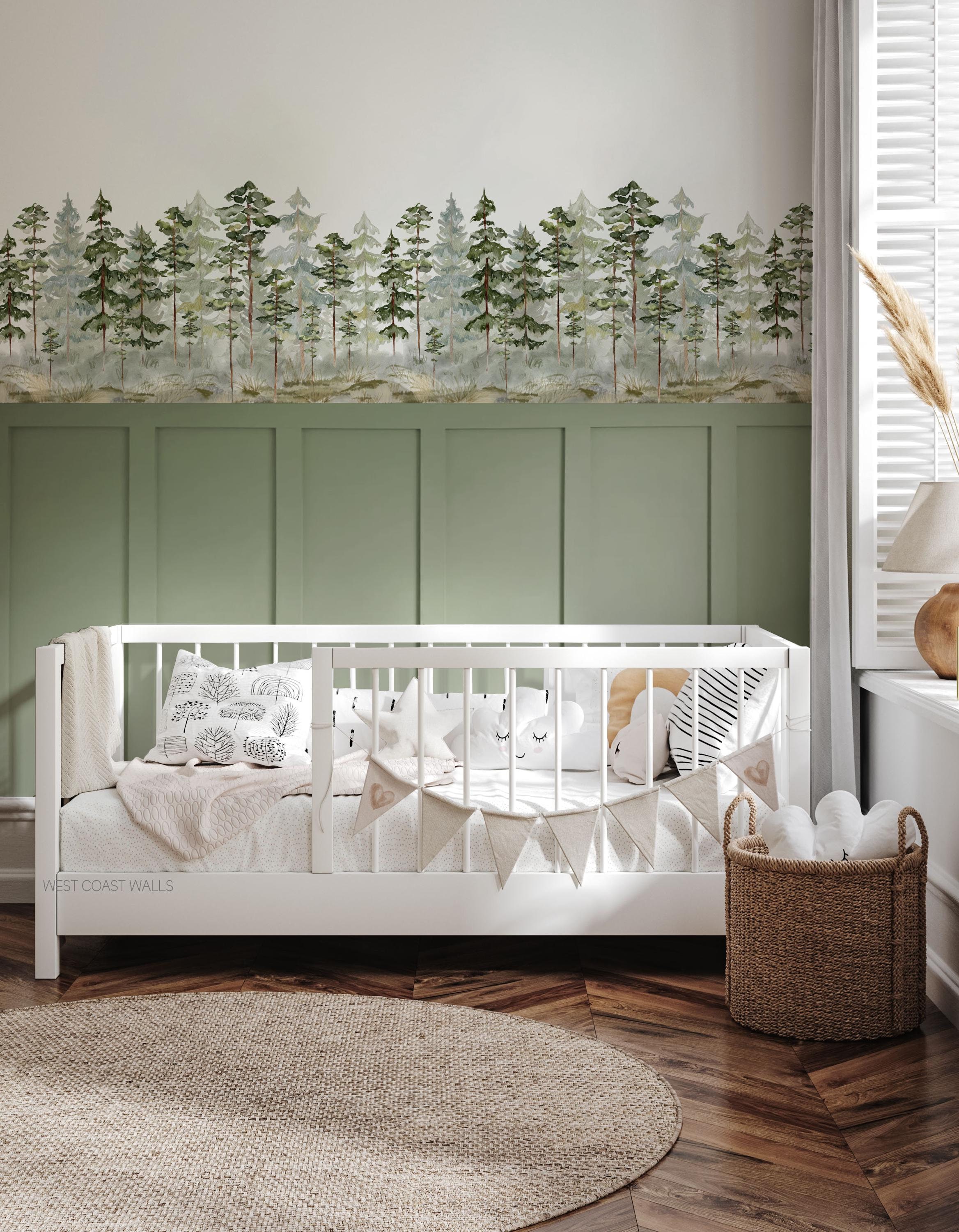 Watercolor Pines Forest Wallpaper, Trees Peel And Stick, Nursery Pi...