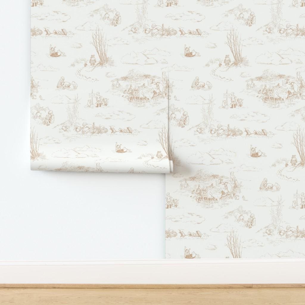 Pooh Soft Honey Non-Pasted Wallpaper Nursery Storybook Tan - Pooh T...