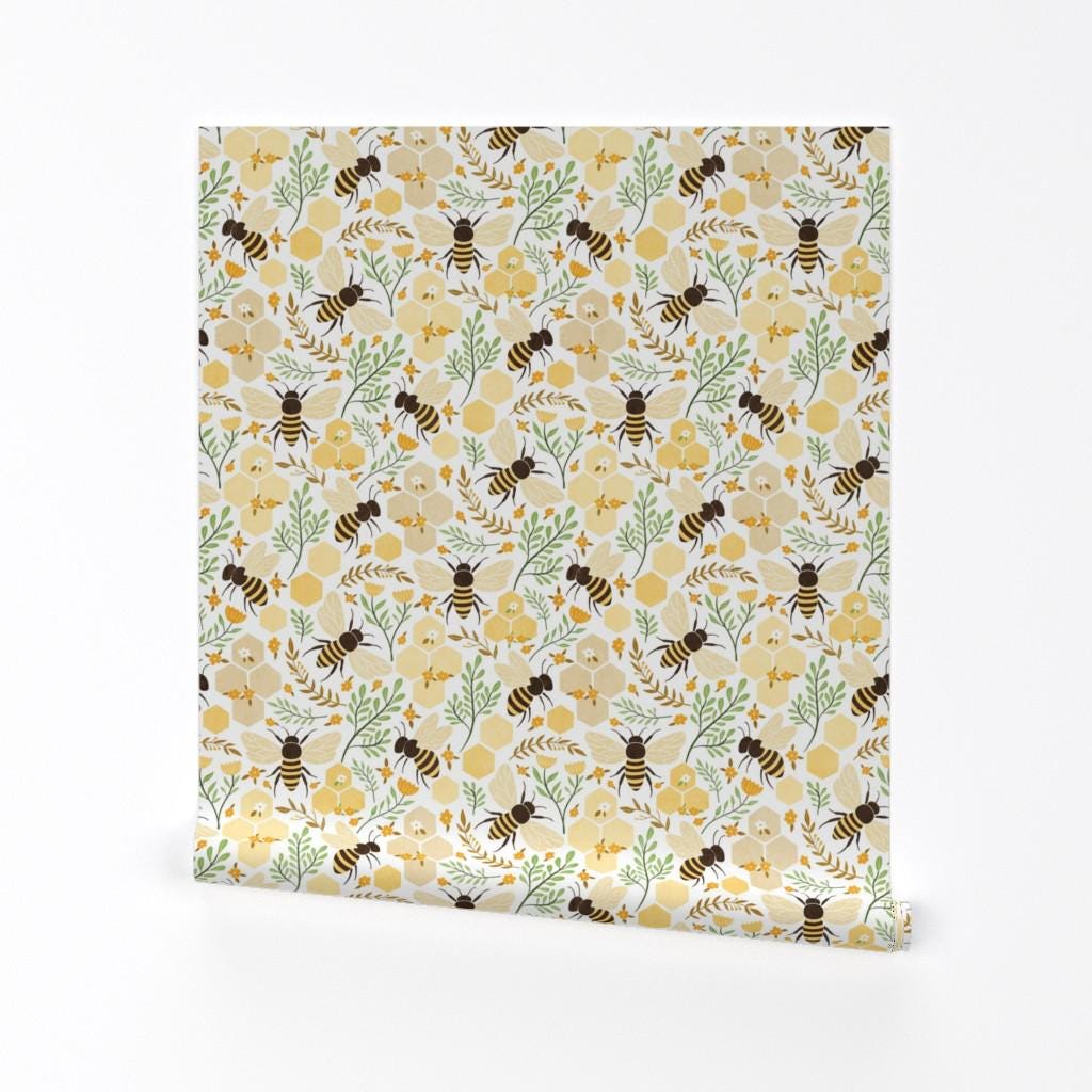 Honey Bee Wallpaper Bee Peel and stick Honey Flower Wallpaper Seaml...