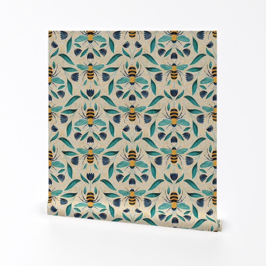 Spring Honeybee Removable Peel and Stick Wallpaper - Summer Bugs He...