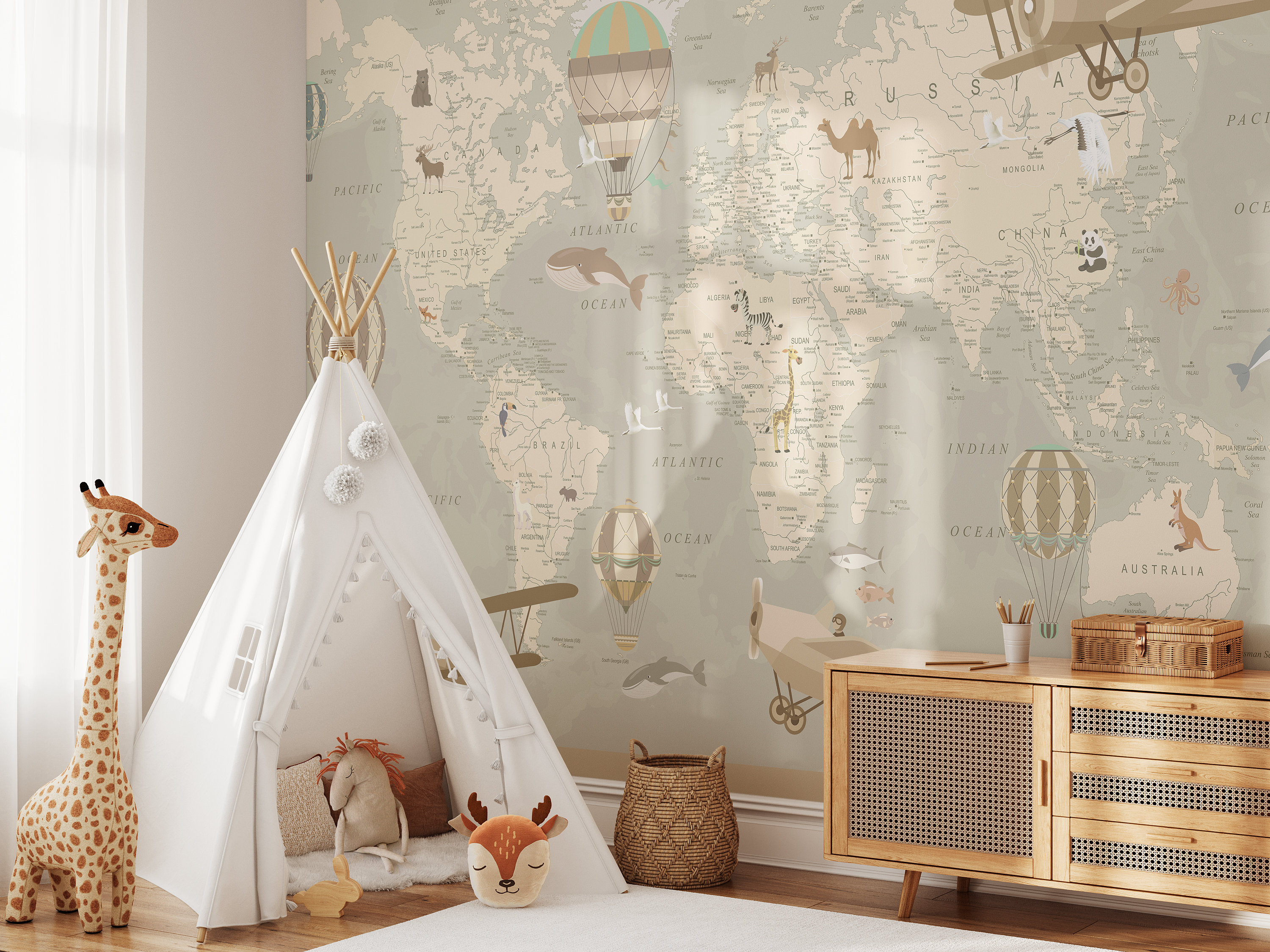 Kids Map of the World Mural, Kids World Map Wallpaper, Charming Nur...