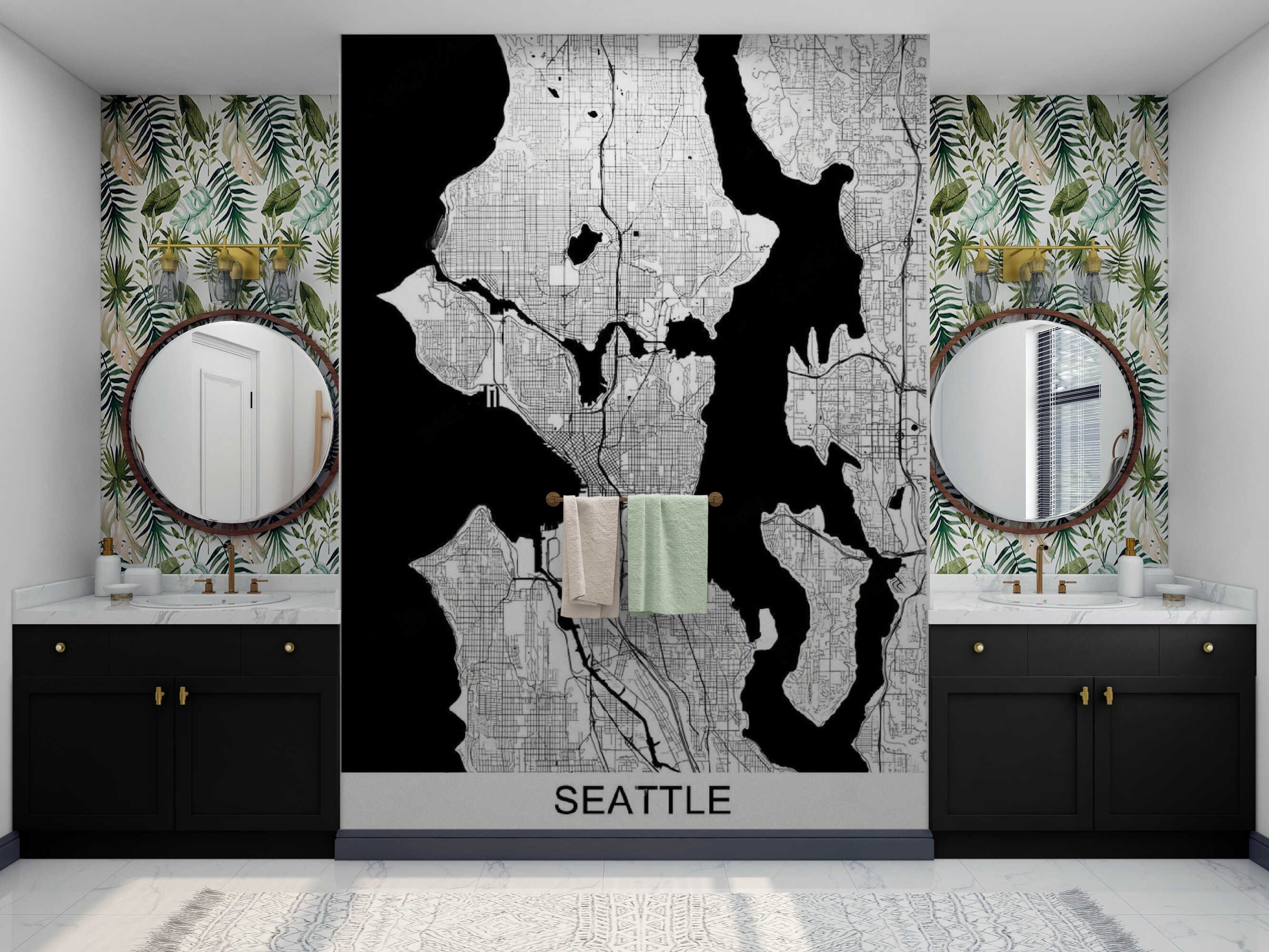 SEATTLE City Map Wallpaper, Modern Wall Art, Map Wall Mural Peel an...
