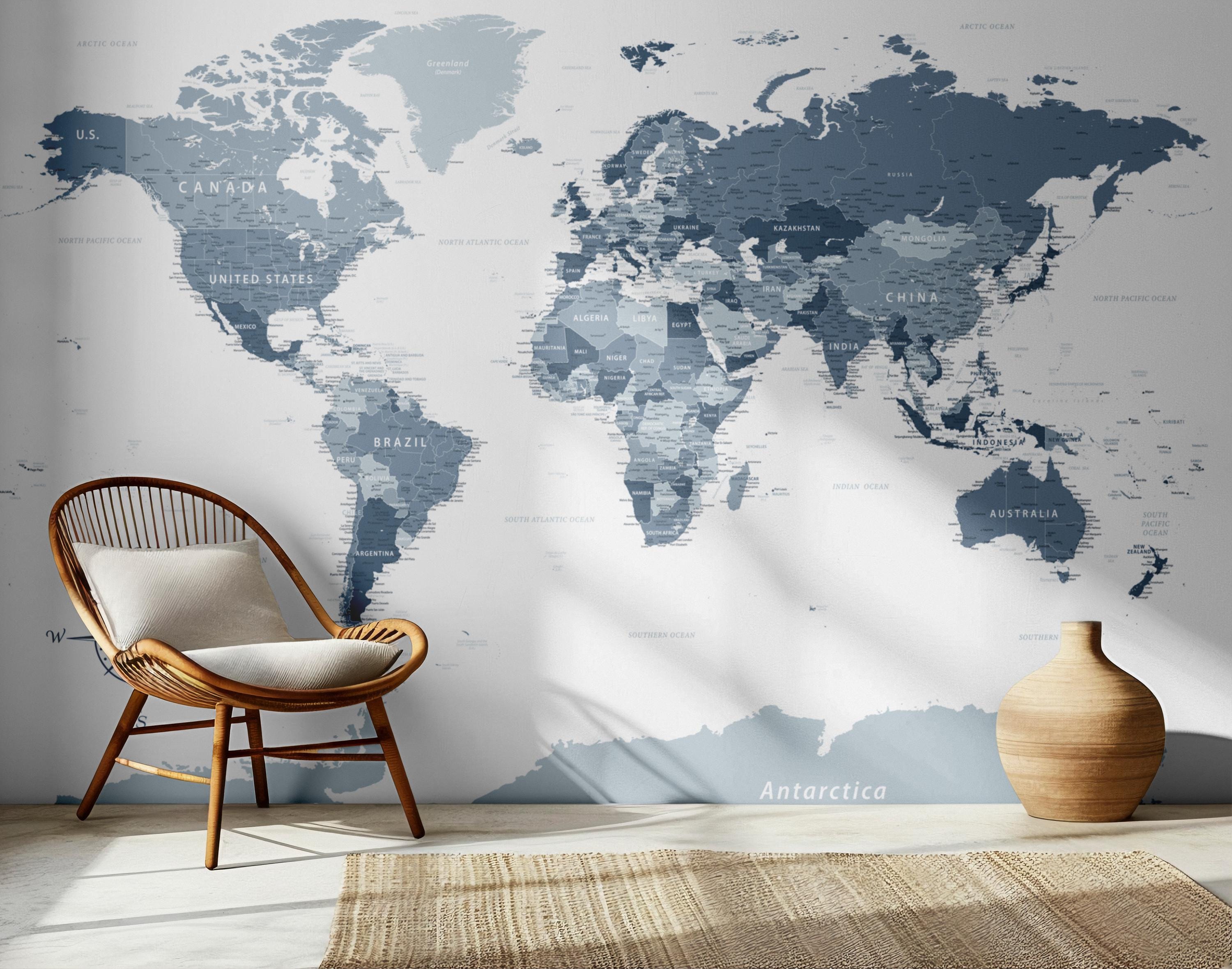 "Peel and stick and Traditional Wallpaper Wall Mural with Classic Political World Map Wall Mura...