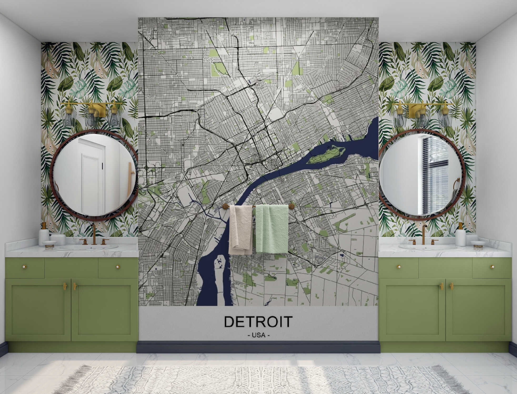 DETROIT City Map Wallpaper Mural Art Wall Design Peel & Stick W...