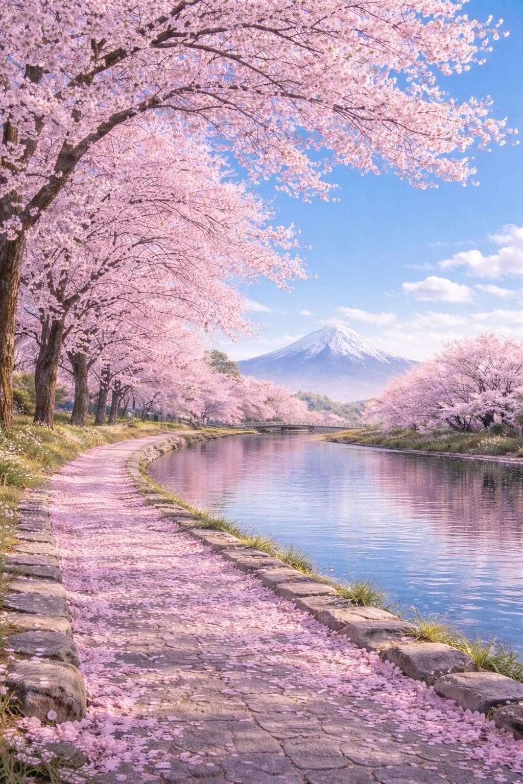 Wall World Cherry Blossoms Japan | Sakura Landscape | Window View B...