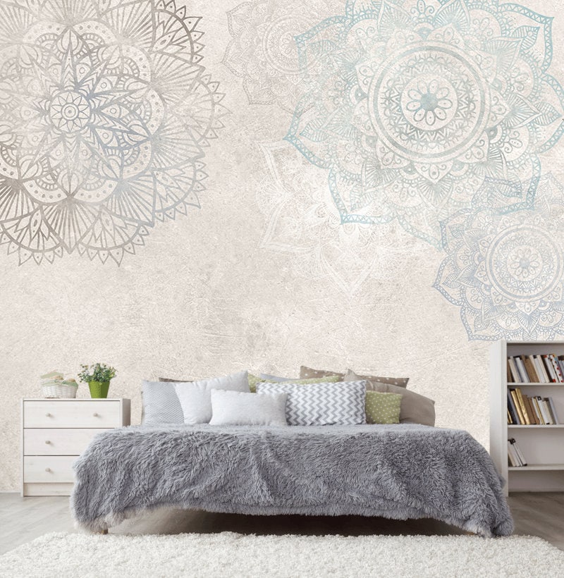 Buddhist Symbol Spiritual Accent wall, Boho Chic Mandala Wall Mural...