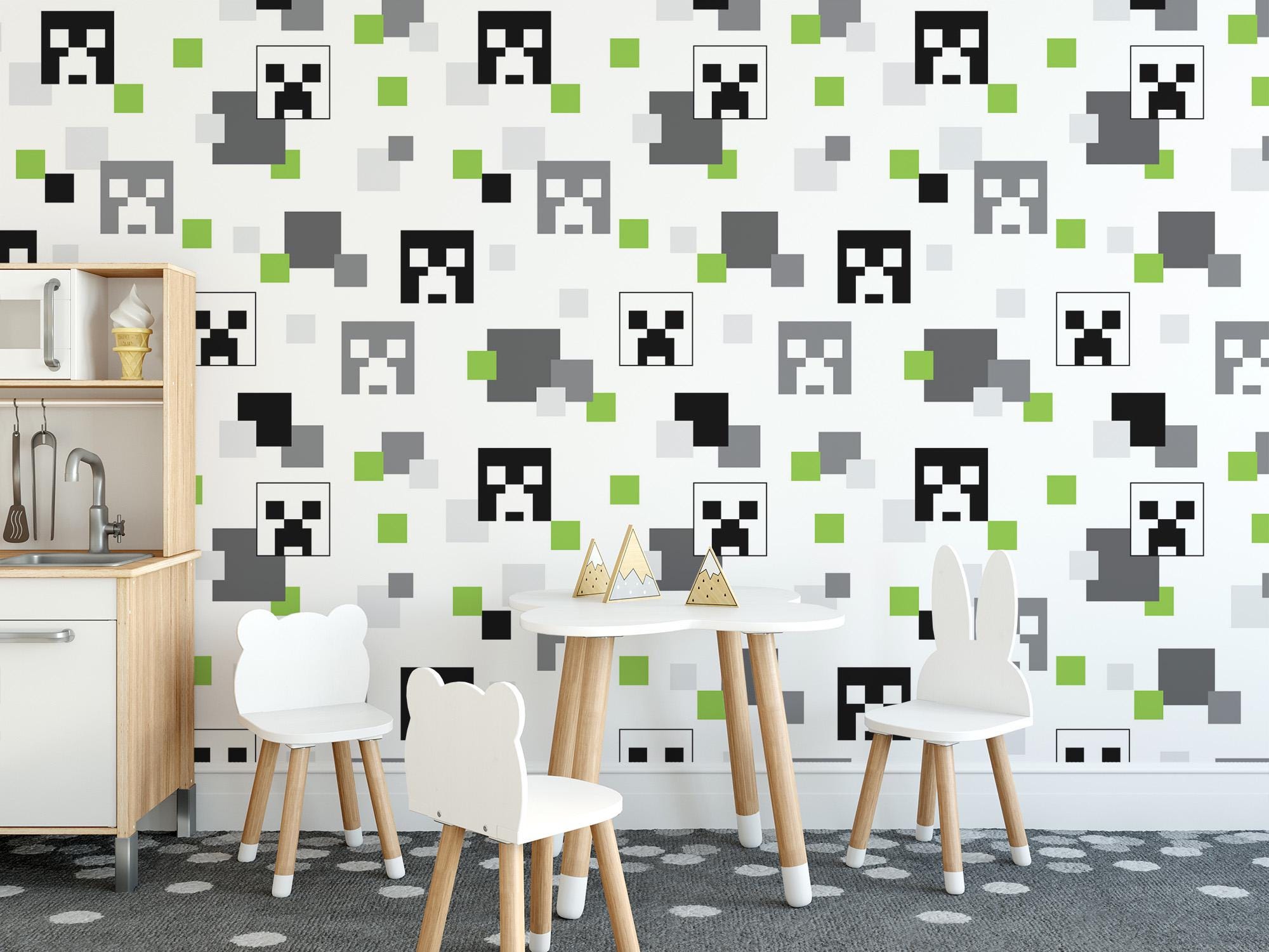 Video Game removable vinyl mural / Creeper pattern wallpaper mural ...