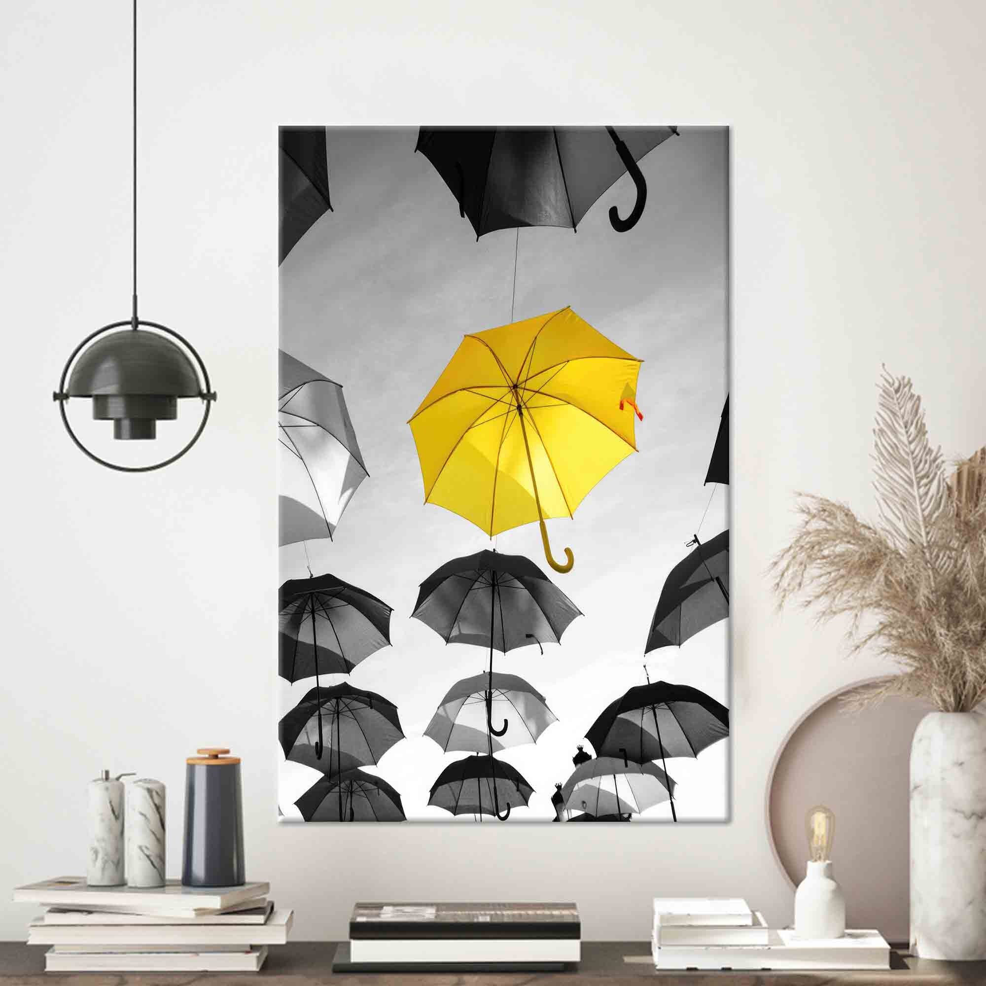 Yellow Umbrella Art, Yellow Wall Art, Umbrella Wall Decor, Modern C...