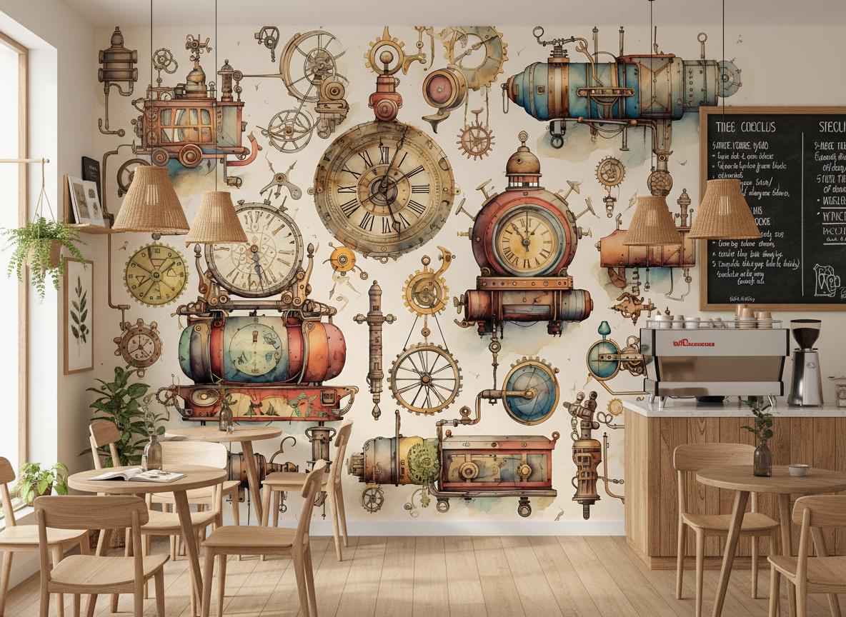 Dive into a whimsical world of industrial adventure with this stunning Steampunk Wall Mural. This in...