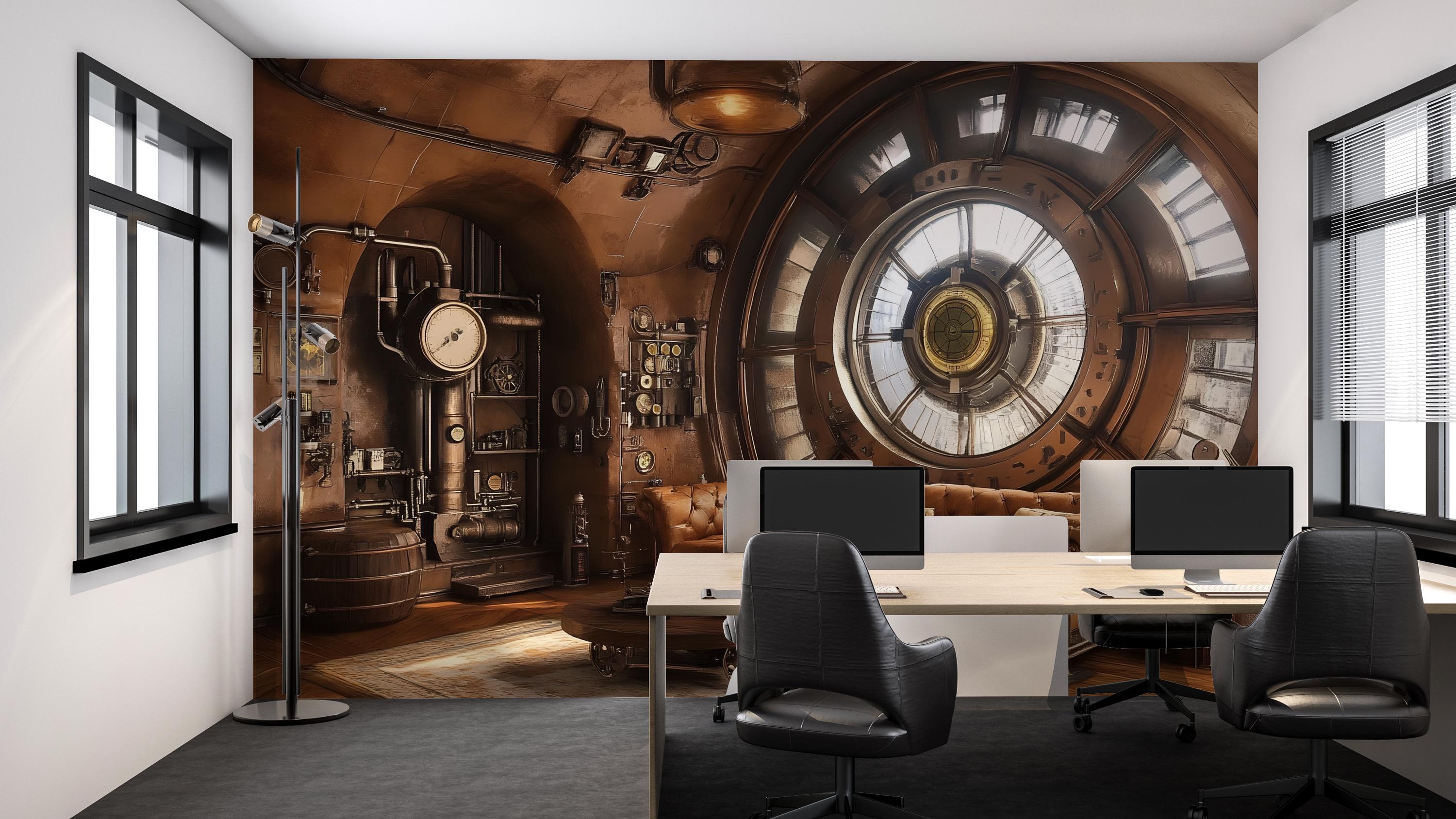 Steampunk Control Room Wallpaper, Bold Industrial Clock Wall Mural,...