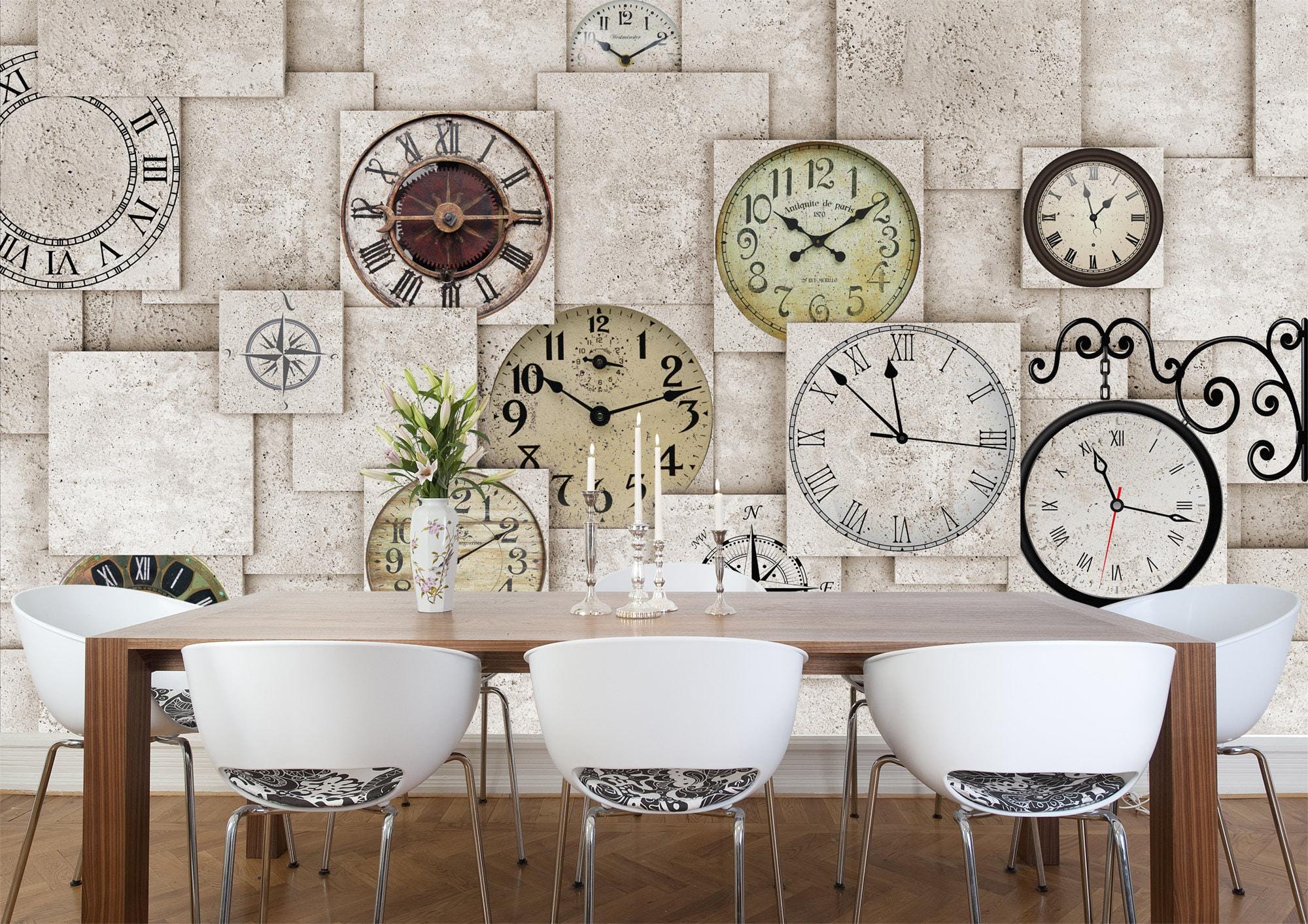 Vintage Wall Clocks Wallpaper Mural, Retro Timepiece Collage Poster...