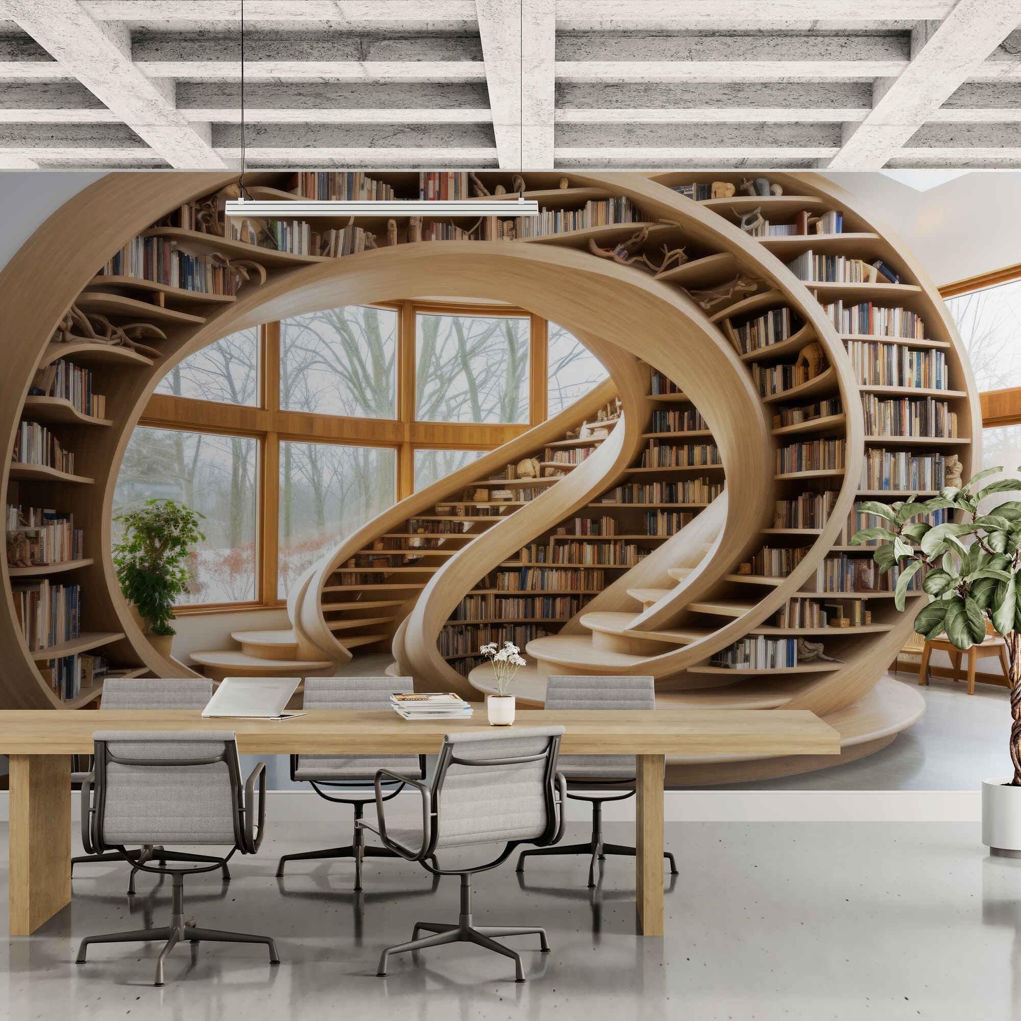 Library wallpaper 3D Wall Mural with Bookshelf View Peel and Stick ...
