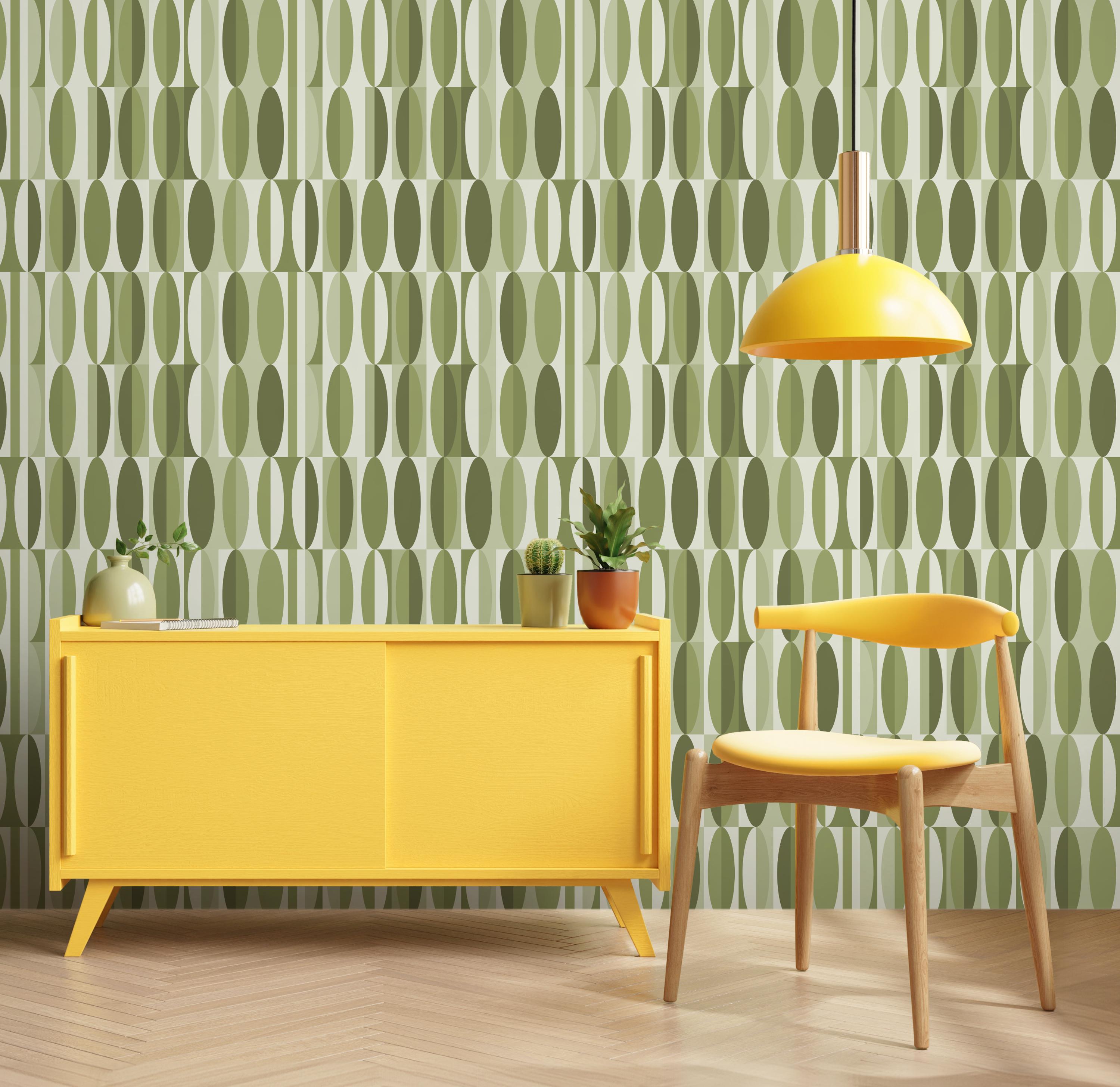Mid century modern removable green living room wallpaper, DIY oval ...