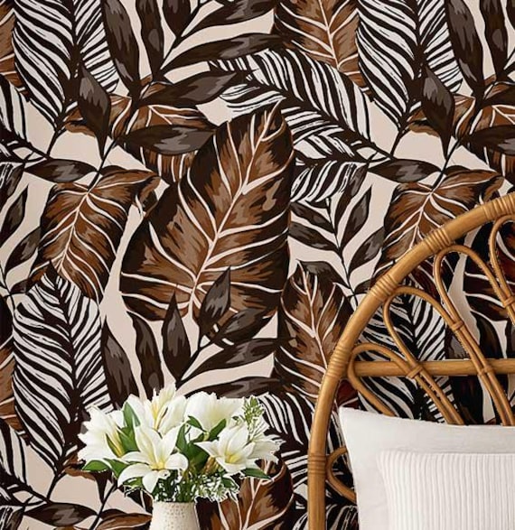 S4Sassy Tropical Leaf Wallpaper - Brown Wall Covering, Self-Adhesiv...