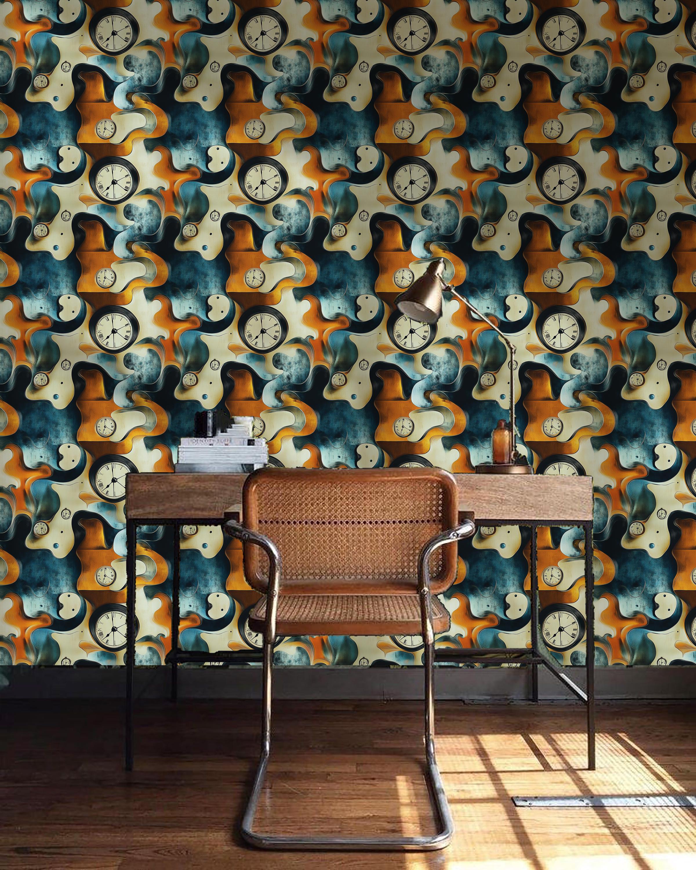 Surrealist Melting Clock Wallpaper: Dali Style Peel and Stick Wall ...