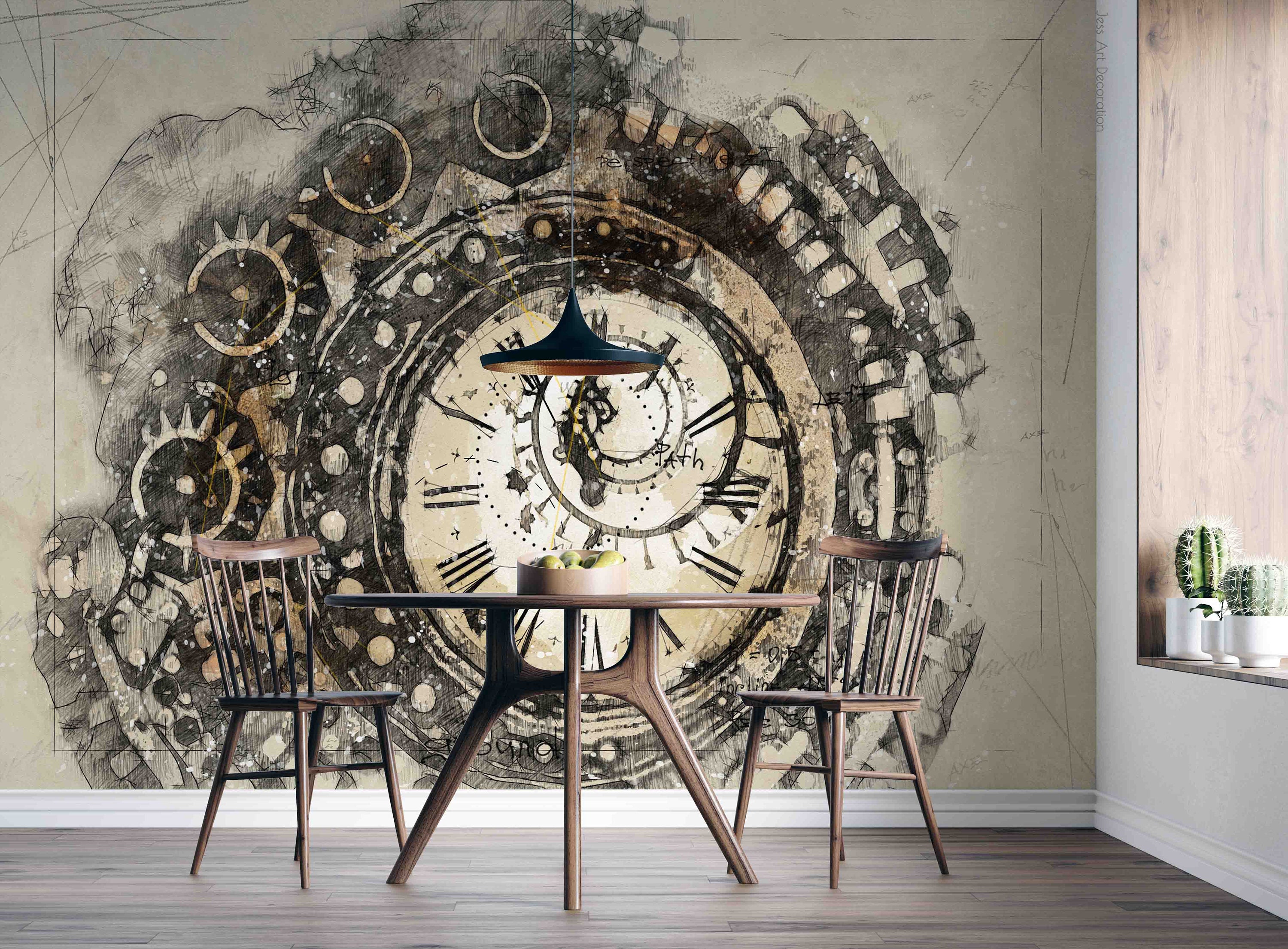3D Clock Wallpaper Mural, Vintage Painting Wall Decor, Peel and Sti...