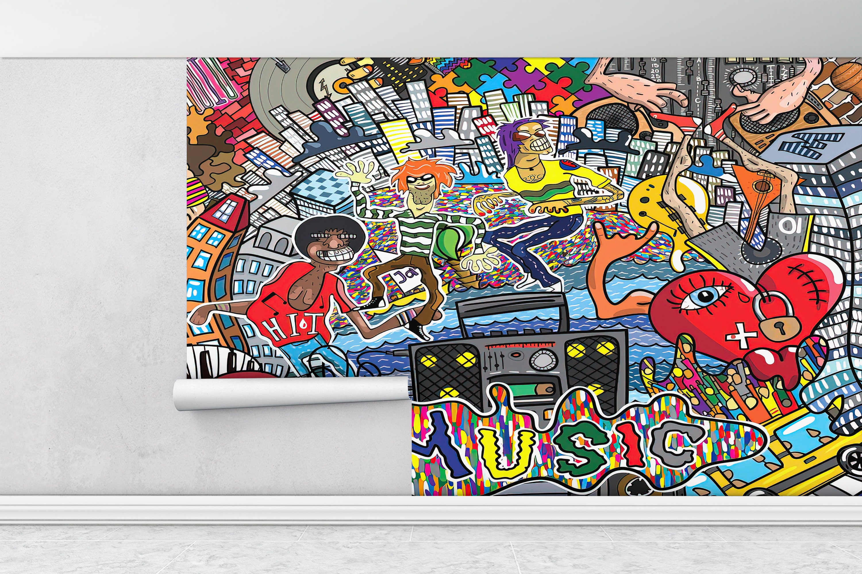 Wall Paper Peel and Stick,Colorful Wall Art,Bright Wall Paper,Music...