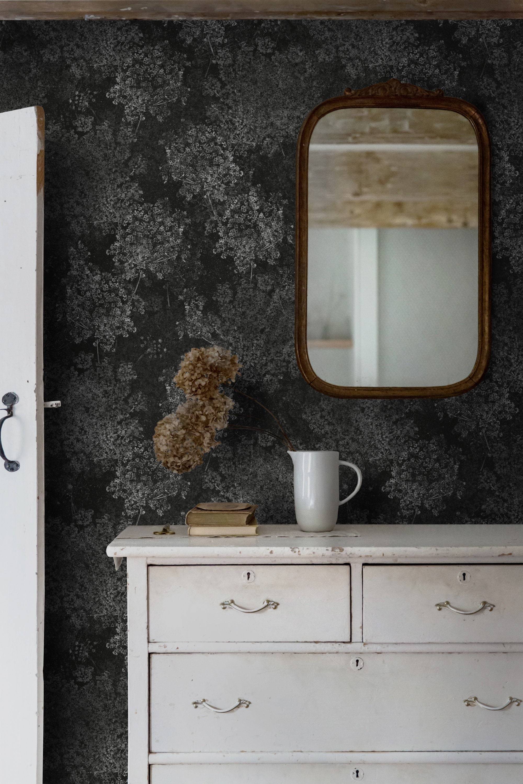 Gothic Dark Black and White Wallpaper, Dark Gray Floral Wall Paper ...