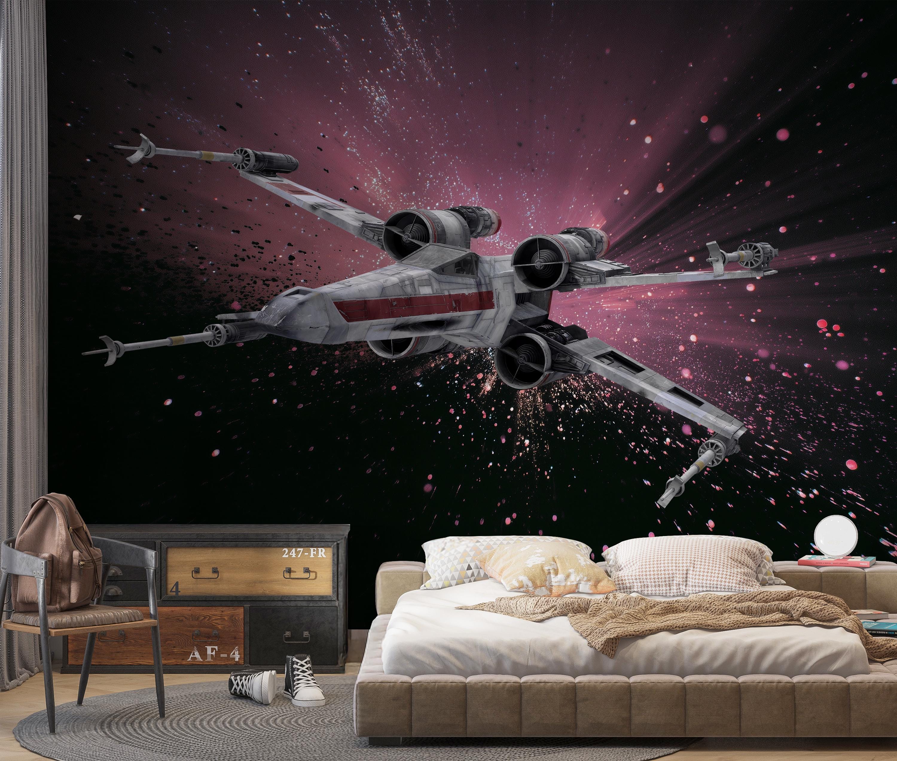 Space Battle Wallpaper, Starship Galaxy Wall Mural, Sci-Fi Decor Sp...