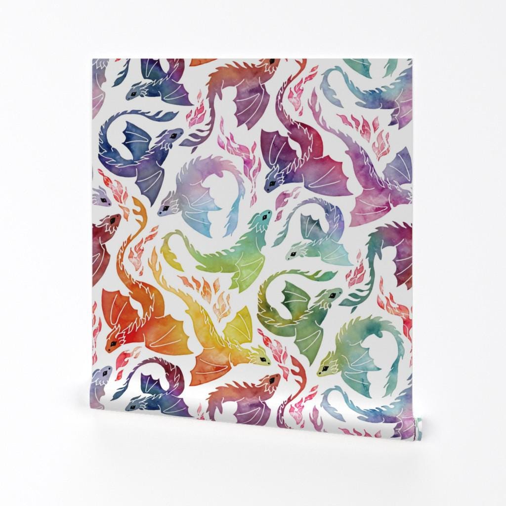 Rainbow Removable Peel and Stick Wallpaper - Bright Fire Dragon Fan...