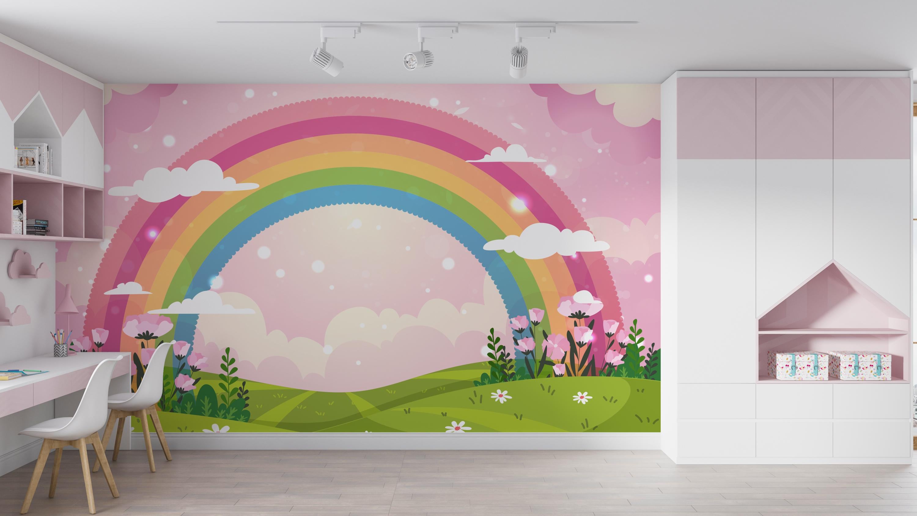"Colorful rainbow wallpaper peel and stick brings bright, cheerful vibes to nurseries and kids'...