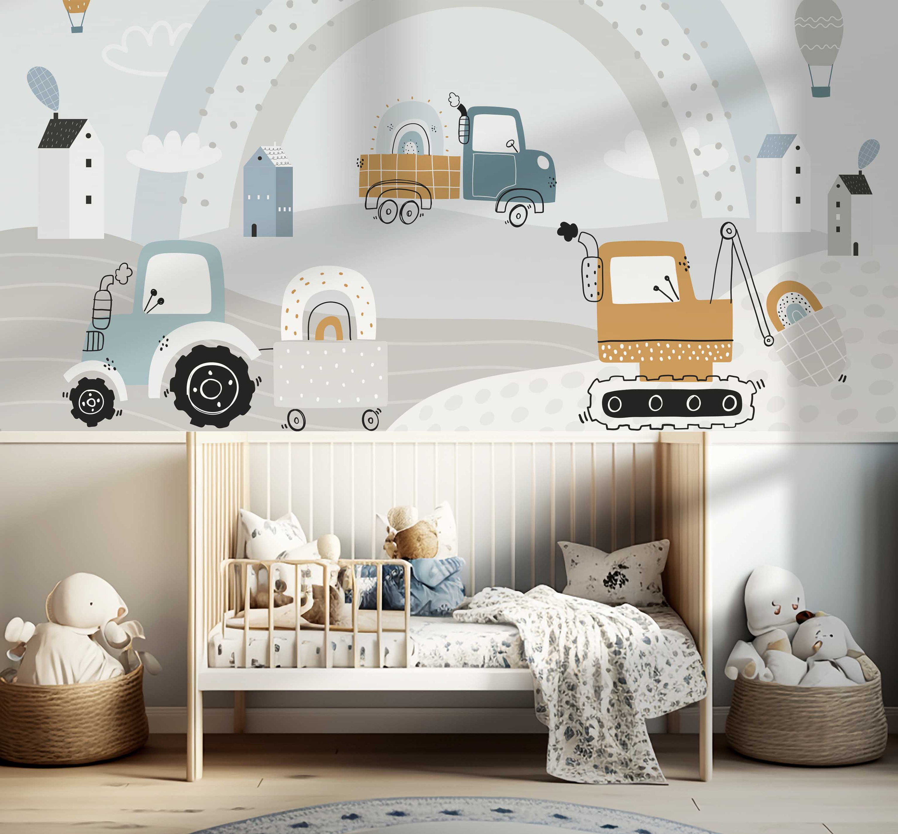 Construction site wallpaper - magical children's room decoration Transform your child's room into an...