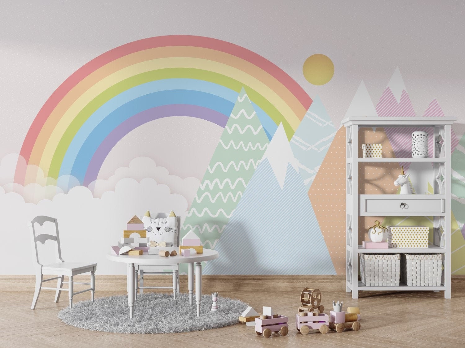 "Rainbow, cloud and mountains wallpaper. Peel and Stick Wall Sticker Minimalistic Scandinavian ...