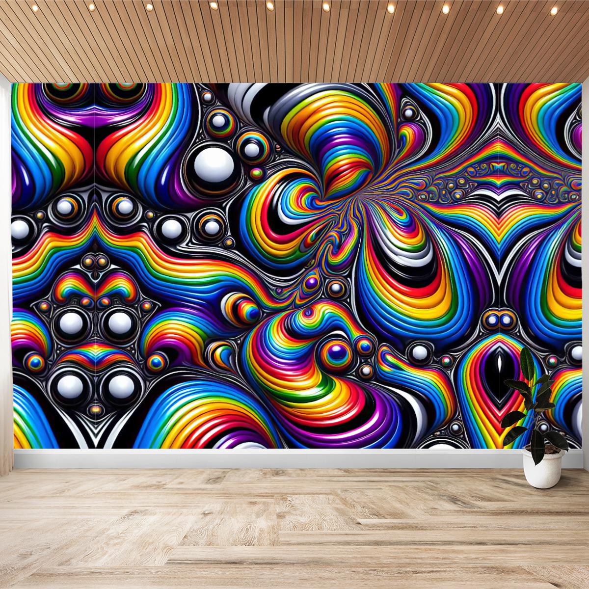 Psychedelic Wallpaper Peel and Stick, Vinyl Wall Mural, Rainbow, Op...