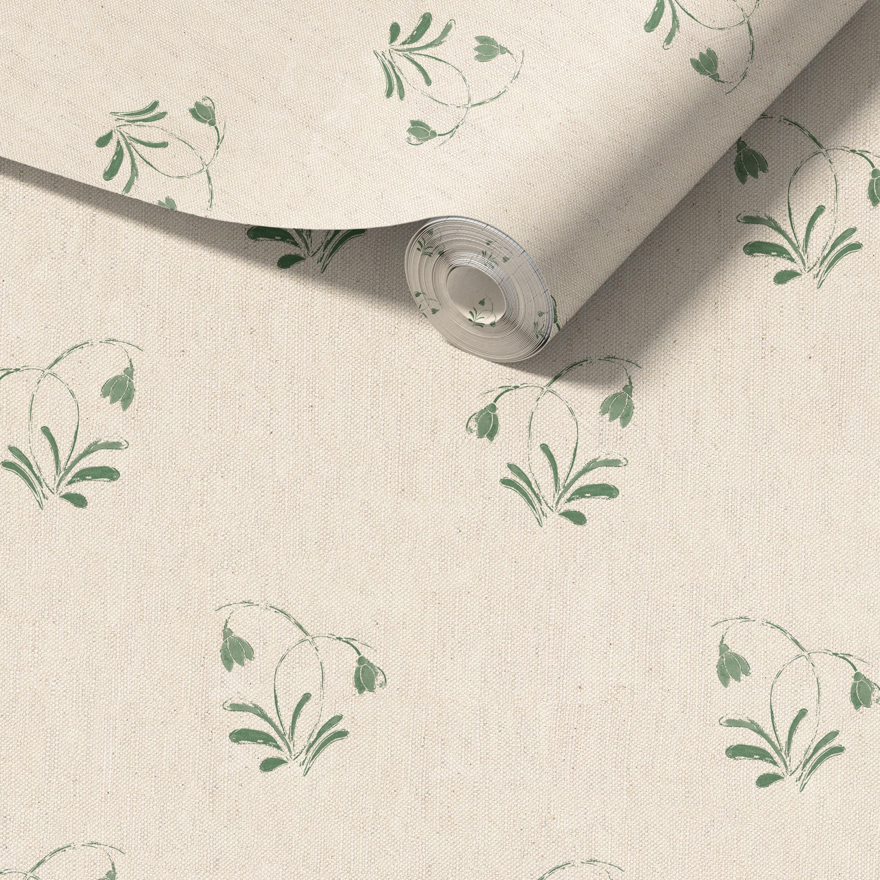 Green floral wallpaper, snowdrop wallpaper, botanical wallpaper, be...