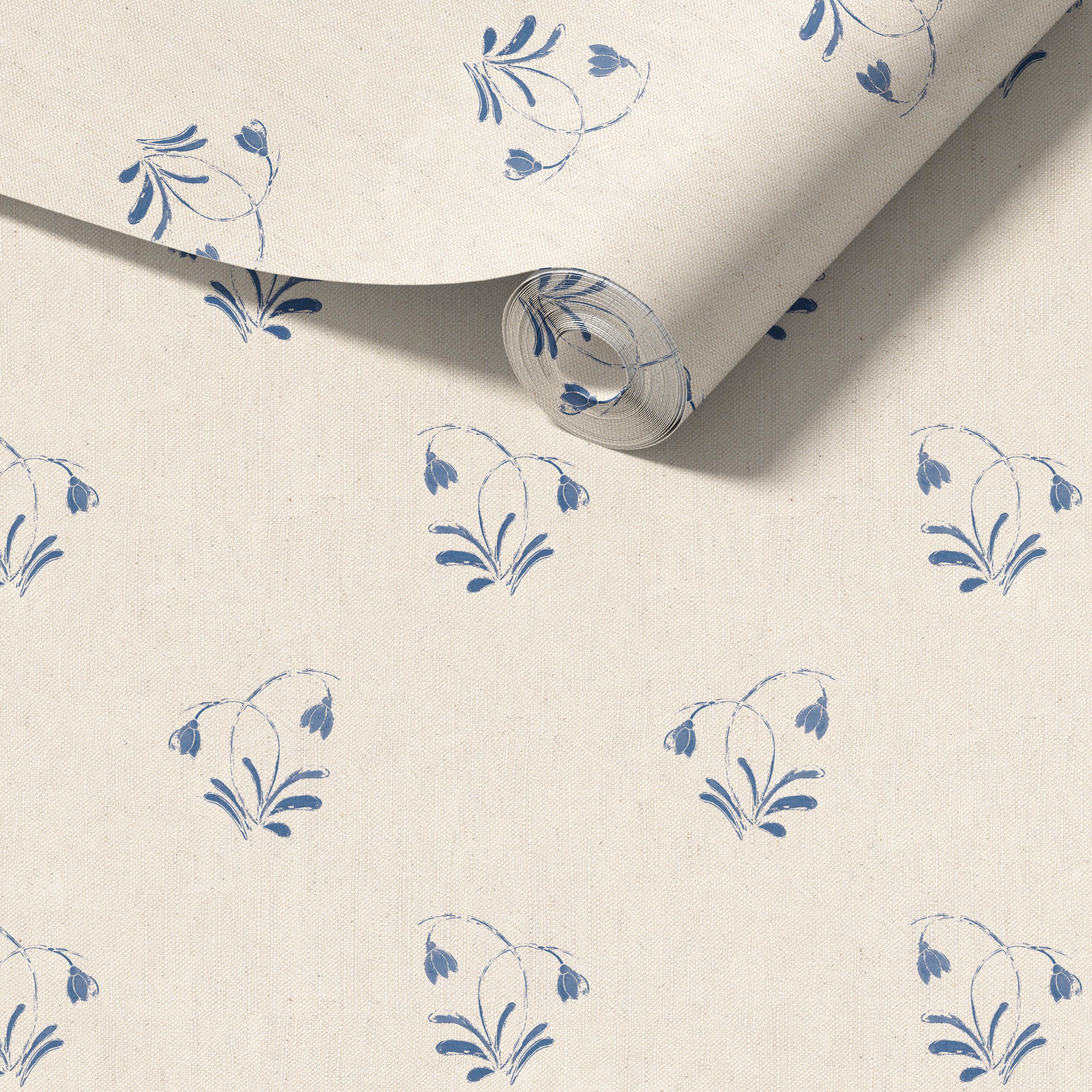 Blue floral wallpaper, snowdrop wallpaper, botanical wallpaper, bed...