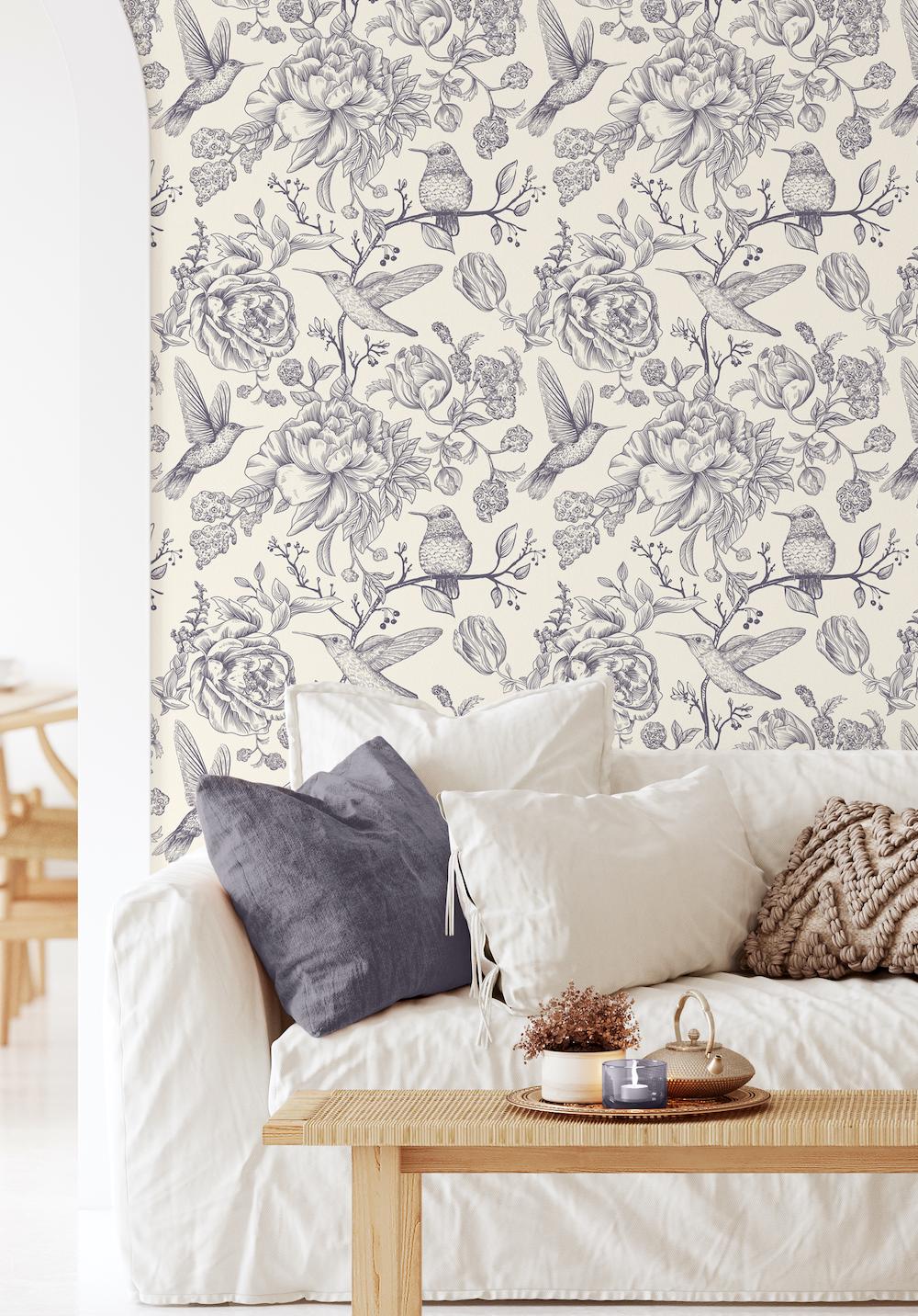 Hummingbird Wallpaper, Navy Blue Wallpaper, Bedroom Wallpaper, Peel...