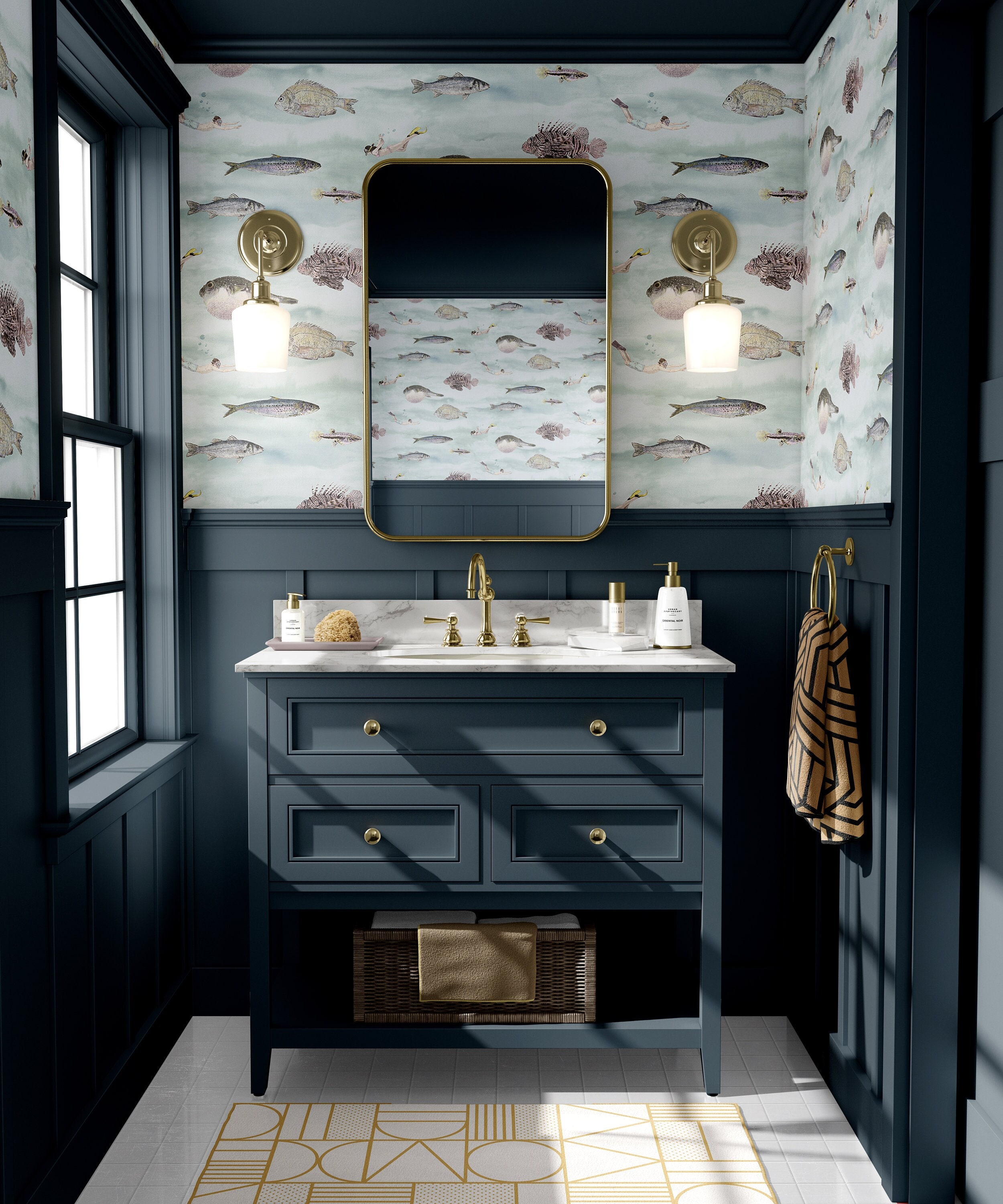 Funky fish wallpaper, perfect for adding a bold retro vibe to your bathroom, powder room, or coastal...