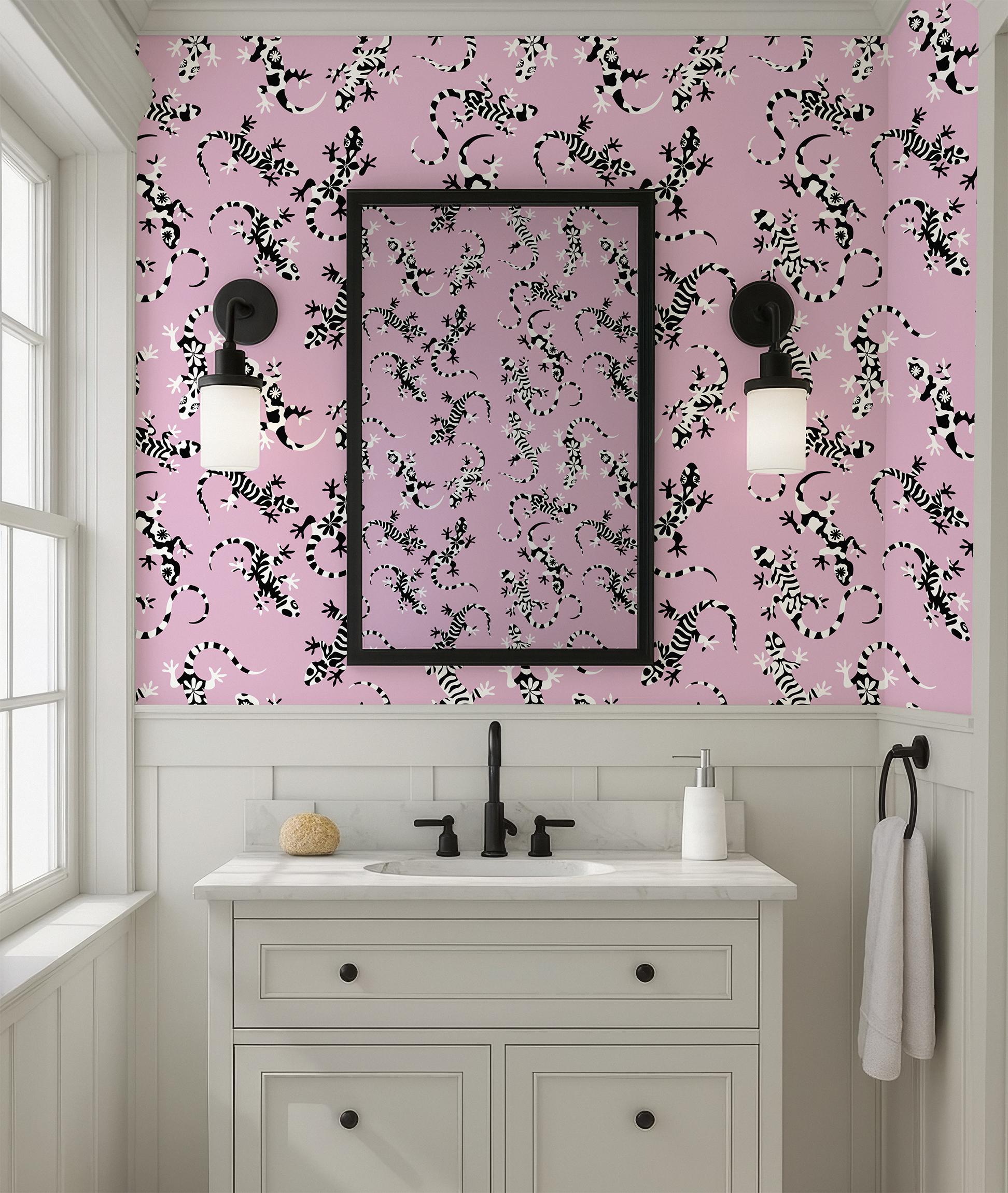 Funky Wallpaper for Bathroom, Bold Pink Gecko Wallpaper Peel and St...