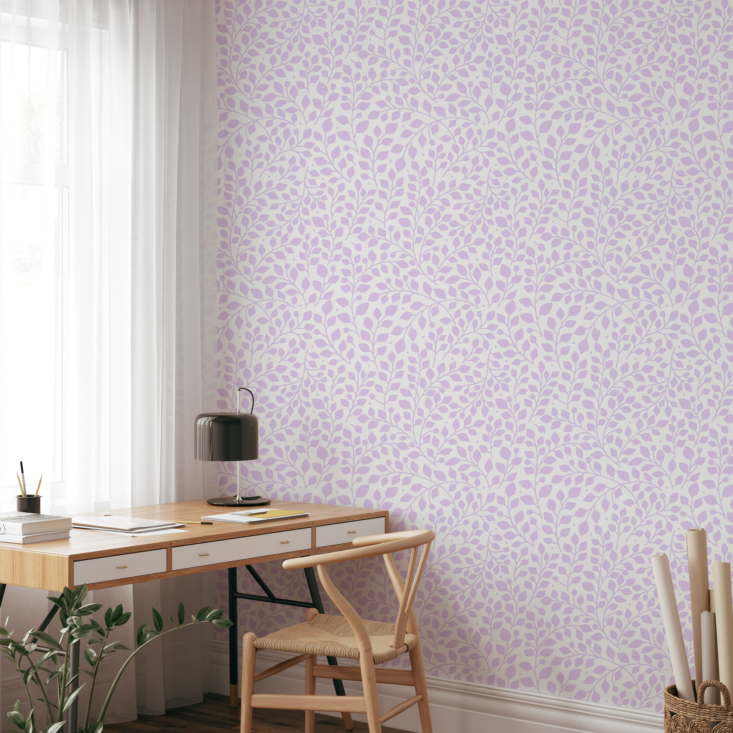Wallpaper Mural Boho Wallpaper Purple Botanical Wallpaper Neutral W...