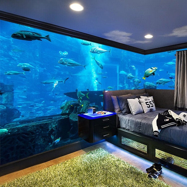 3D Submarine Beauty Fish ART 759Removable Wallpaper Self Adhesive W...