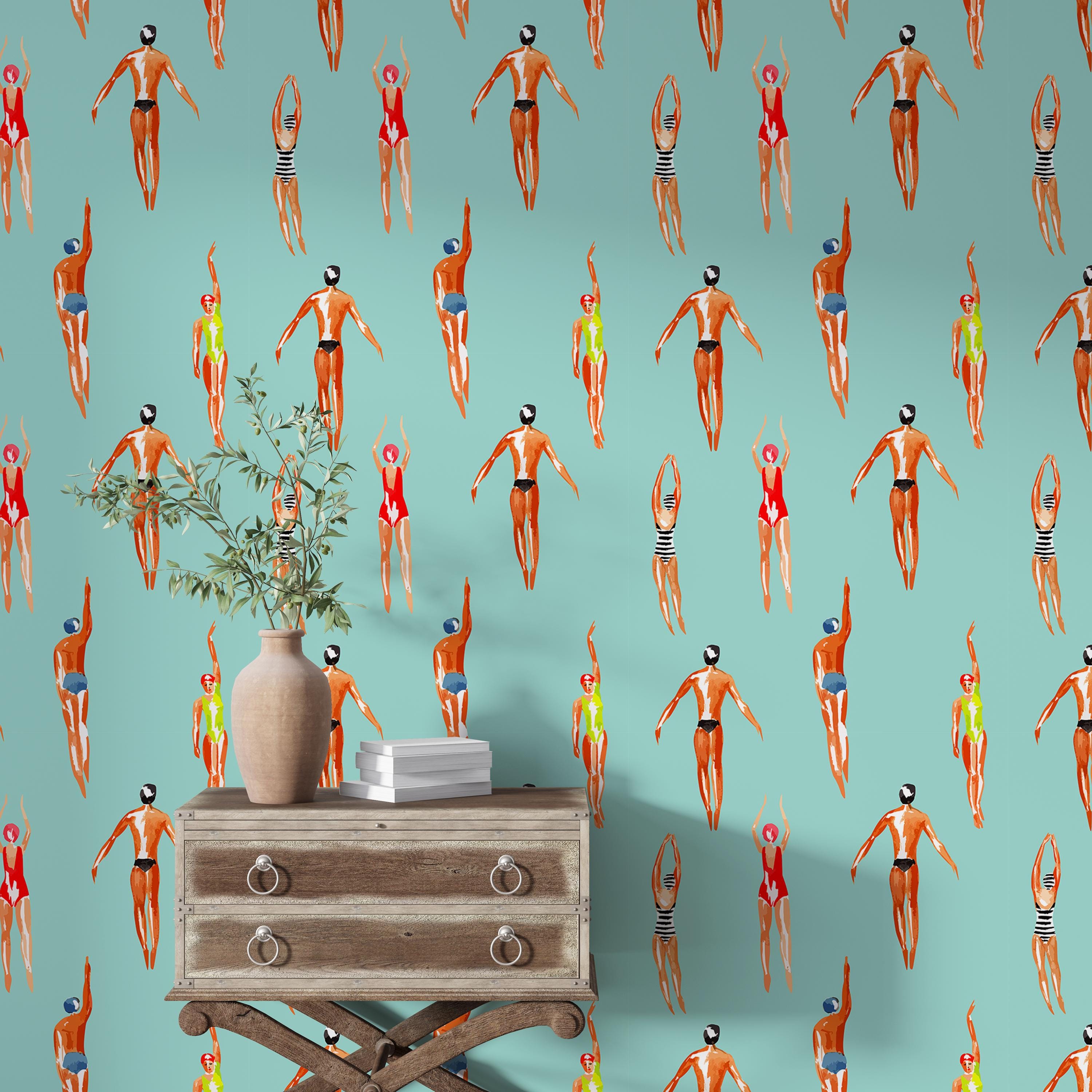 "Peel and stick and Traditional Unpasted Wallpaper Wall Mural with Swimmers Funny Wallpaper, Se...