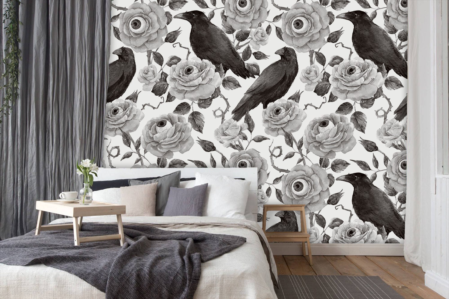 Raven wallpaper, print painting wallpaper, wall decal, removable pe...
