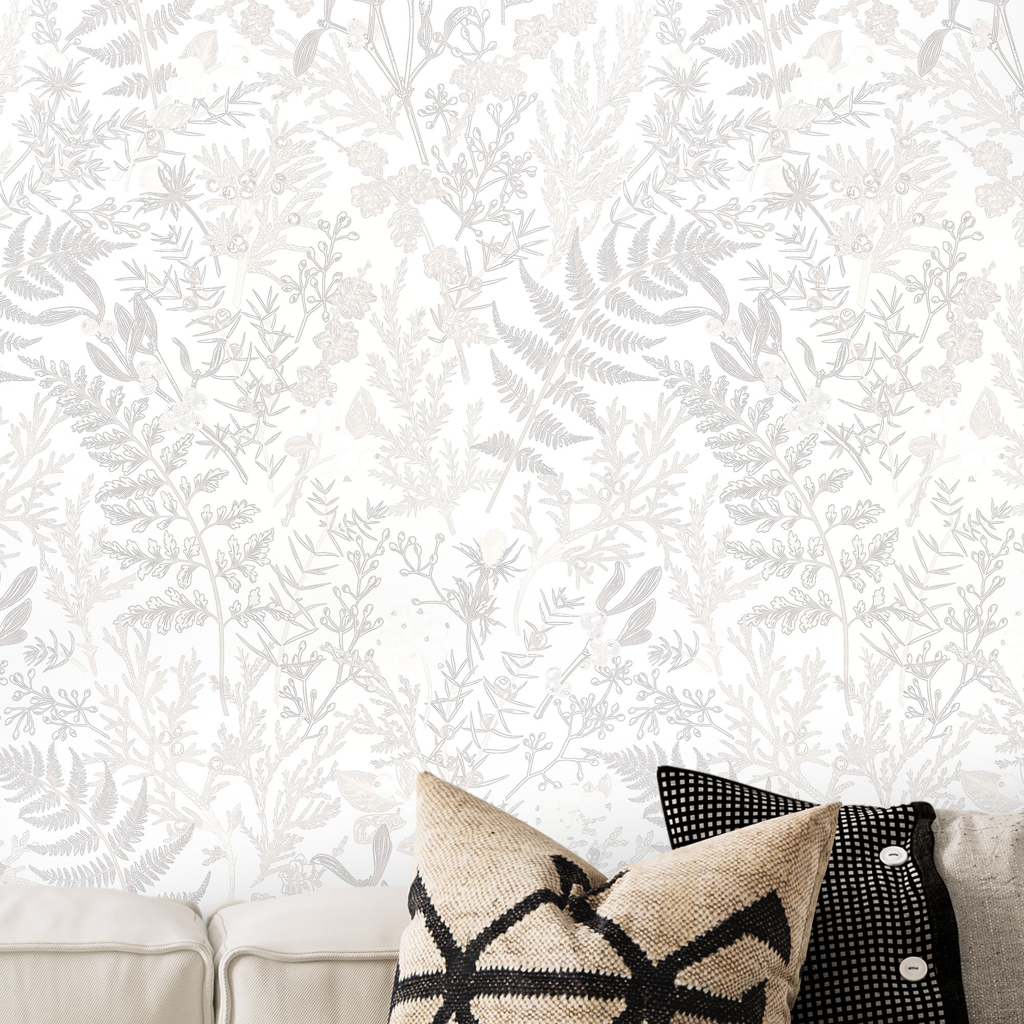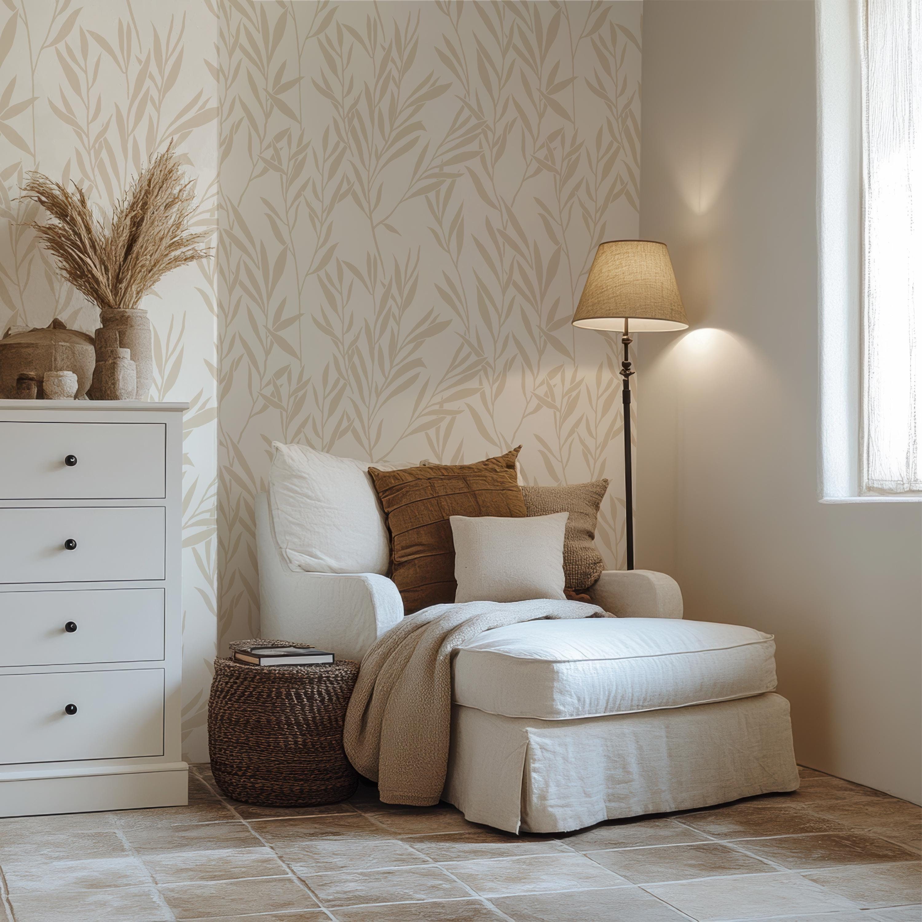 Beige and White Leaf Peel and Stick Removable Wallpaper, Neutral Li...