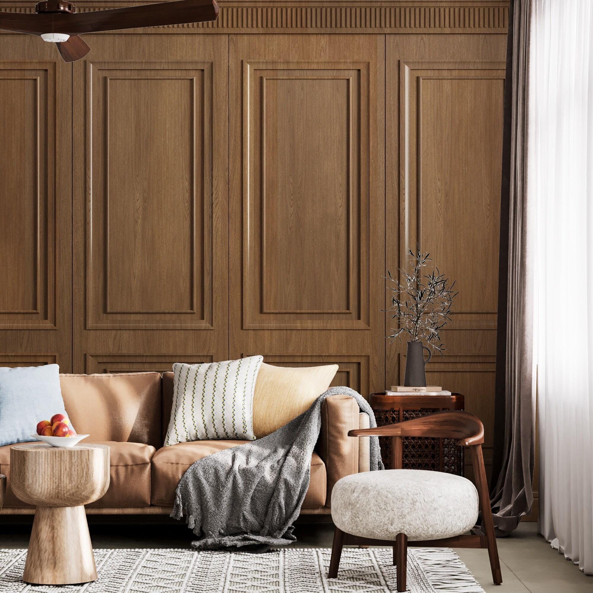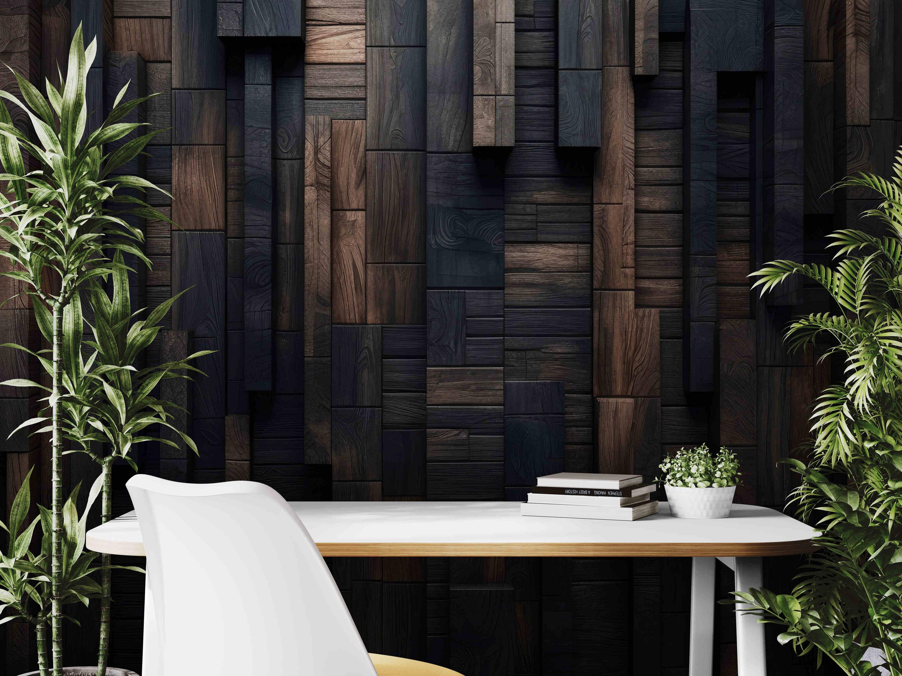 "Add Depth and Sophistication to Your Walls This dark wood 3D panel wallpaper brings a bold, mo...