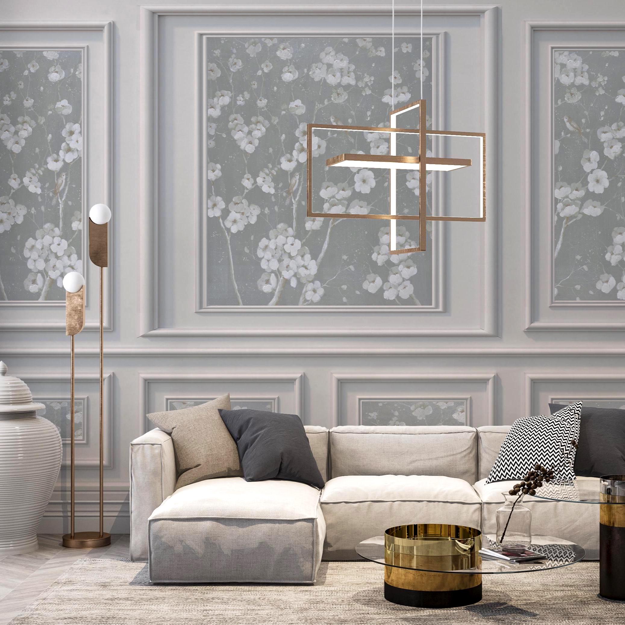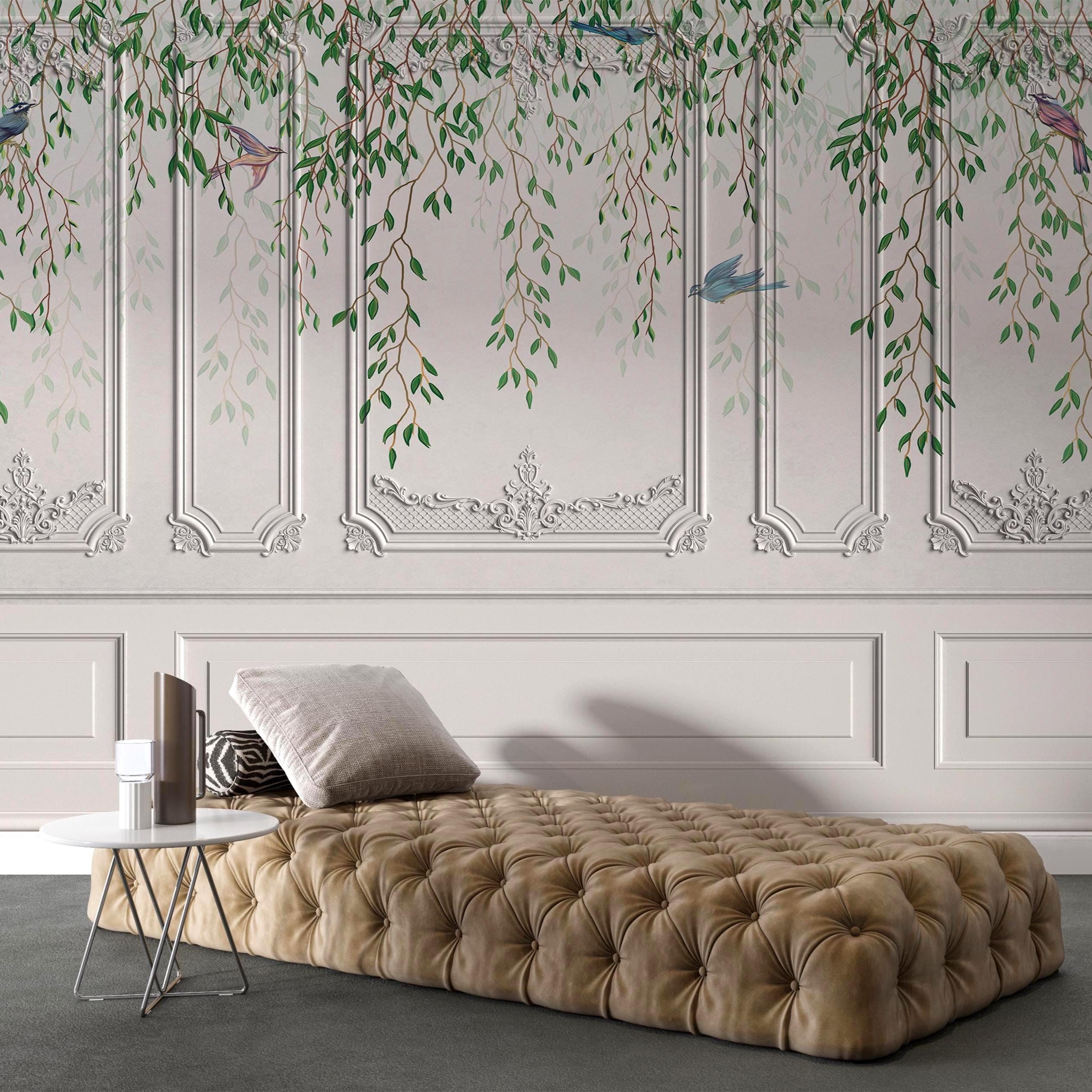 Minimalist Flowers Wood Panels Wallpaper | Luxury Wood Moulding Mur...