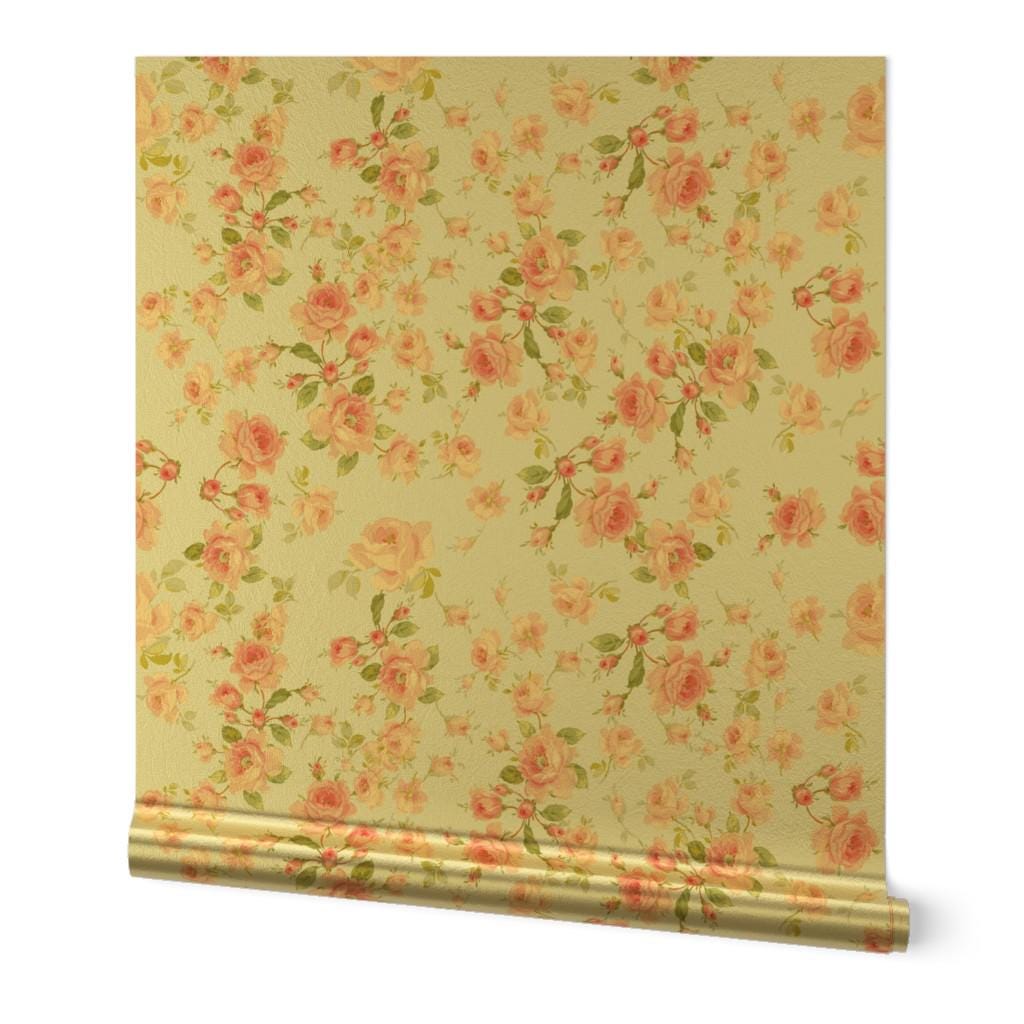 Watercolor Removable Peel and Stick Wallpaper - Roses Botanical Cab...