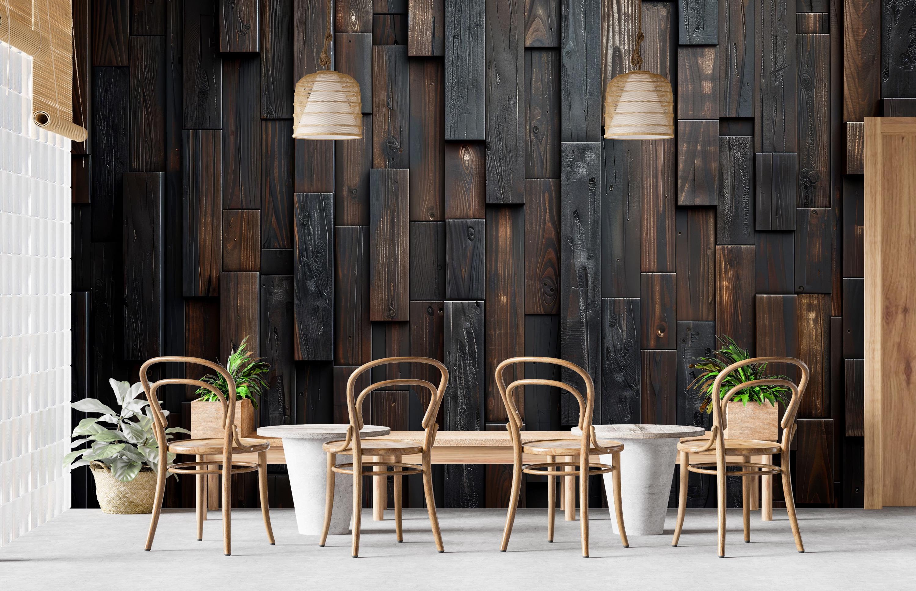3D Dark Wooden Mural Peel and Stick,Brown Wood Textured Wallpaper for Office,Ancient Cafe Wall Art,M...