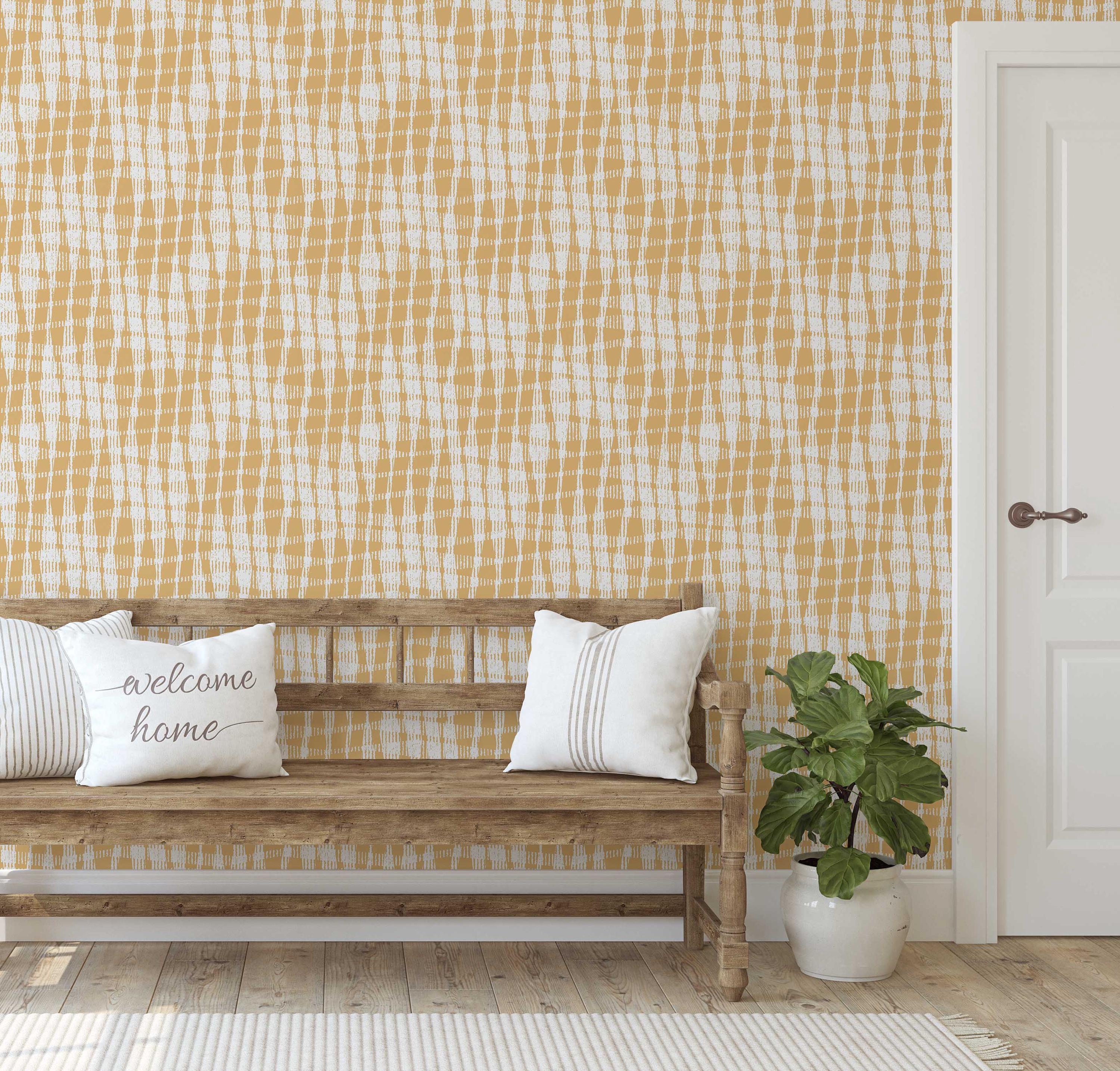 Butter Yellow Wallpaper, Floral Gingham Wallpaper, 2025 Trending Ye...