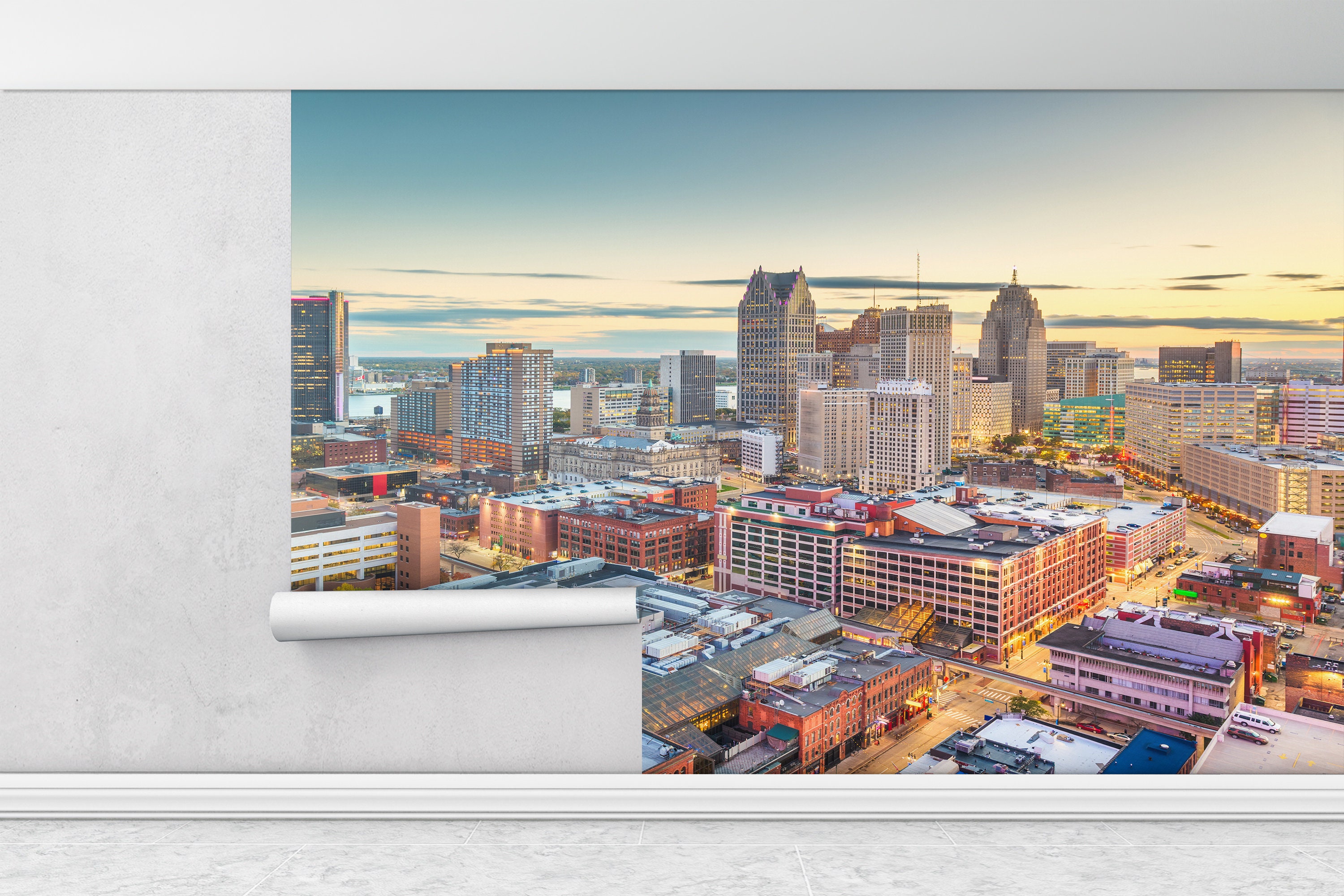 Modern Wall Paper,Paper Wall Art ,Detroit Michigan Landscape,Skylin...