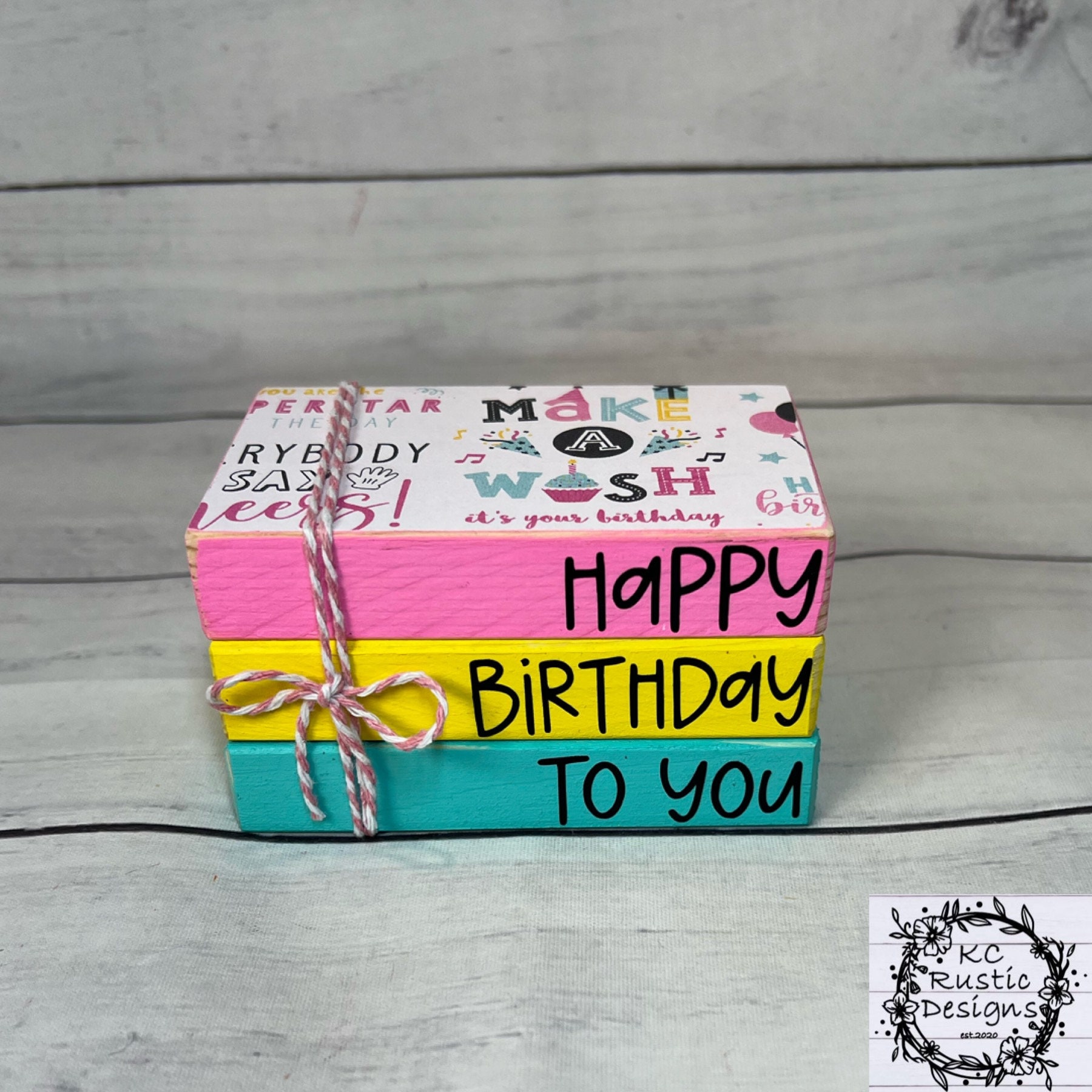 Birthday mini wood book stack/home decor/wood books/tier tray decor...