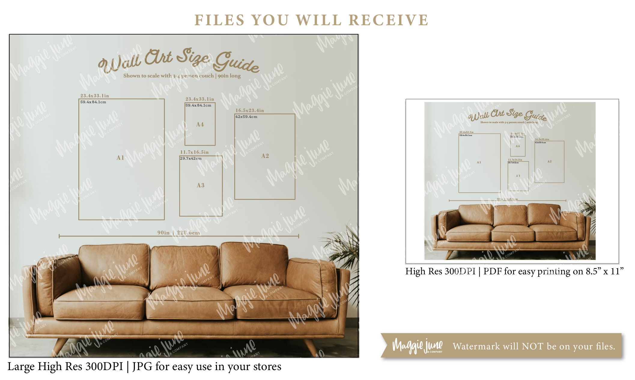 An EASY and CLEAR --TO SCALE-- print size chart! (Shown to scale with a 3-4 person couch measuring 9...
